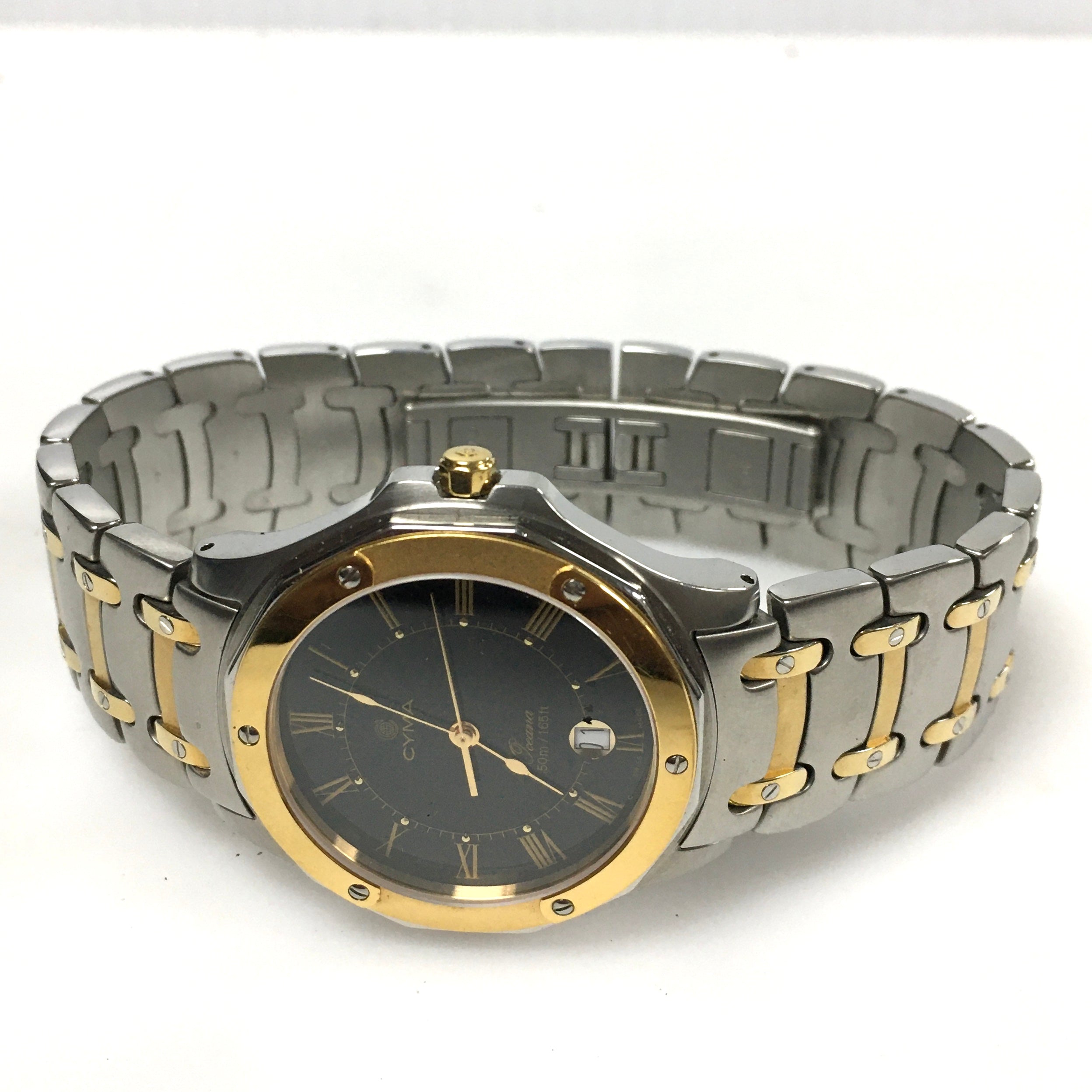 v309 Vintage CYMA 50M WR Quartz Swiss Made Two-Tone Stainless Steel Wrist Watch