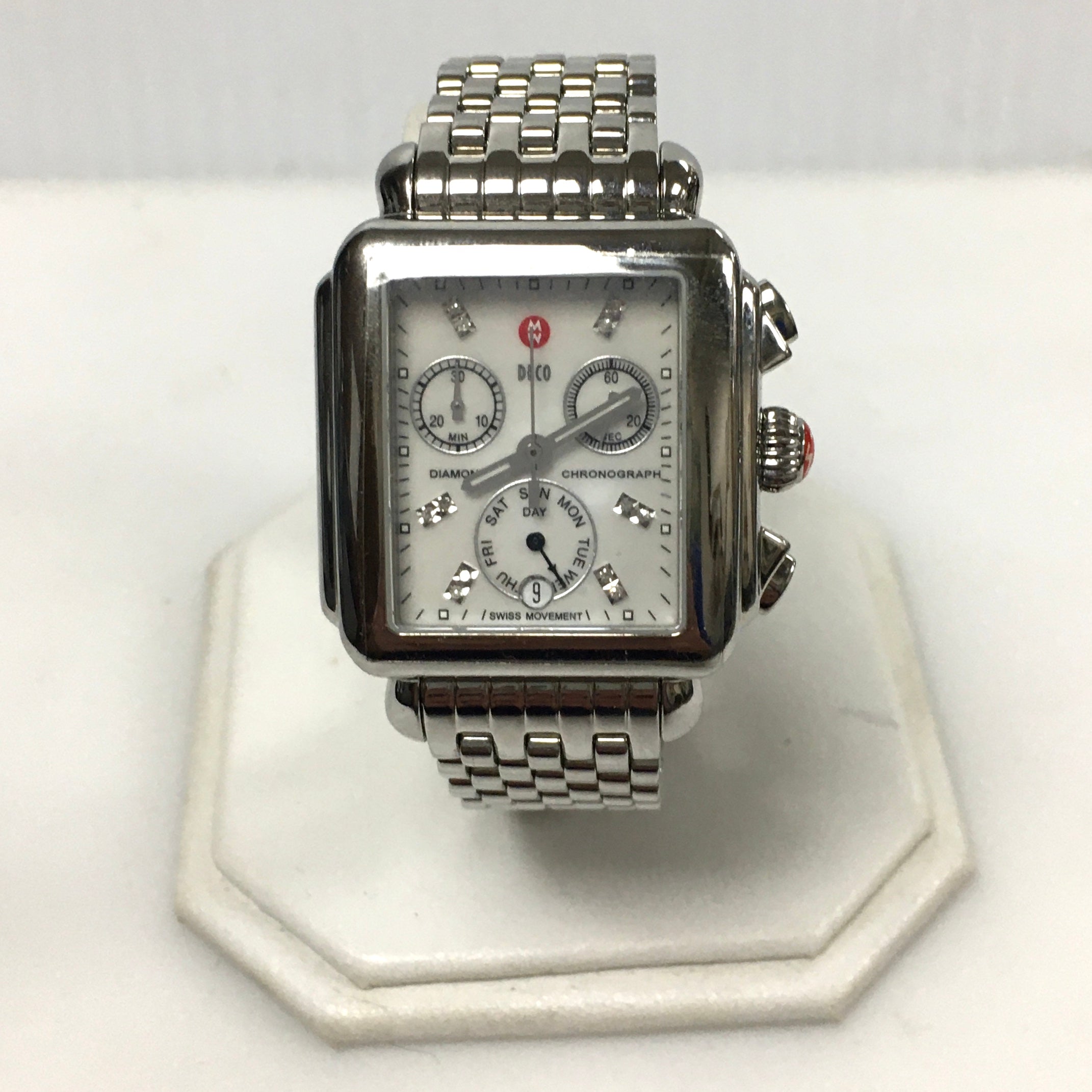 v319 Vintage Michele Deco Diamonds 0.05ct tw Chronograph Stainless Wrist Watch