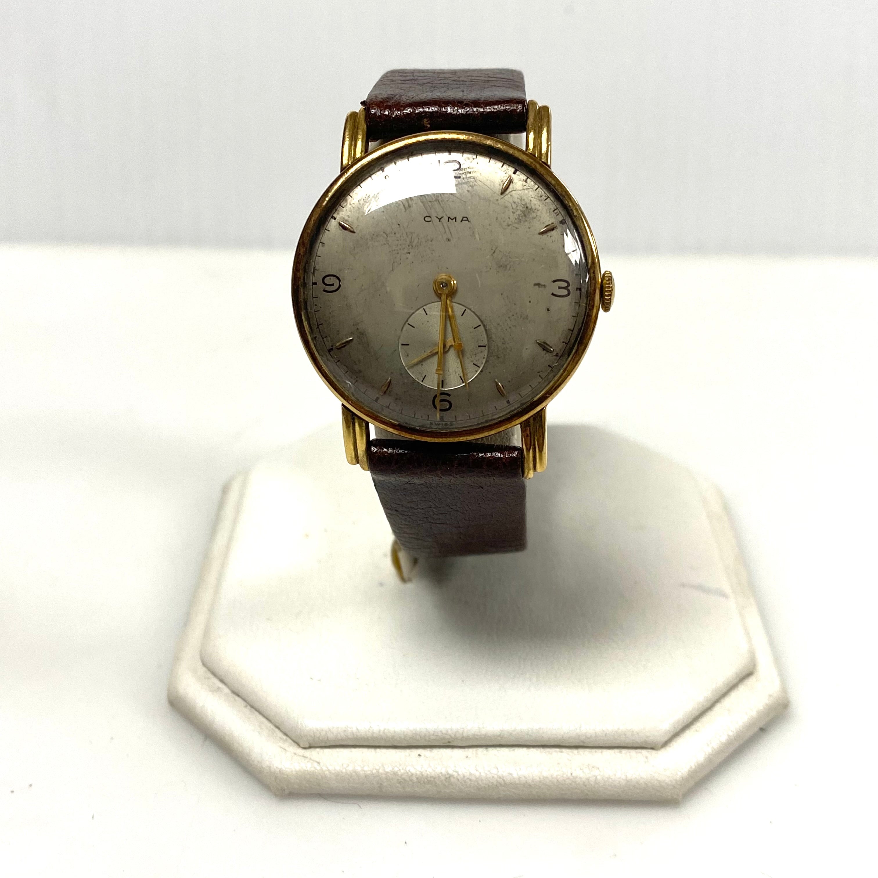 a159 Vintage Cyma Mechanical 18K Yellow Gold 15J Swiss Made Men's Wrist Watch