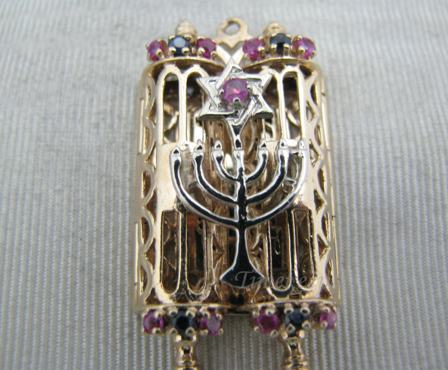 a672 Nice Vintage Opening Torah with Menorah & Star of David in 14k Yellow Gold