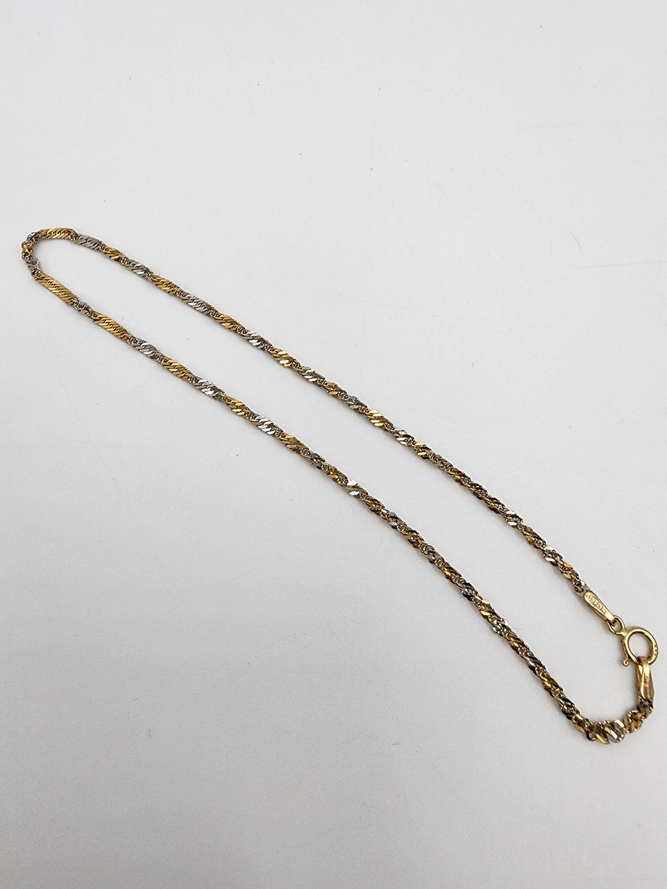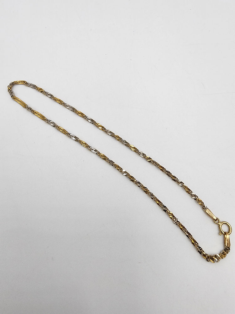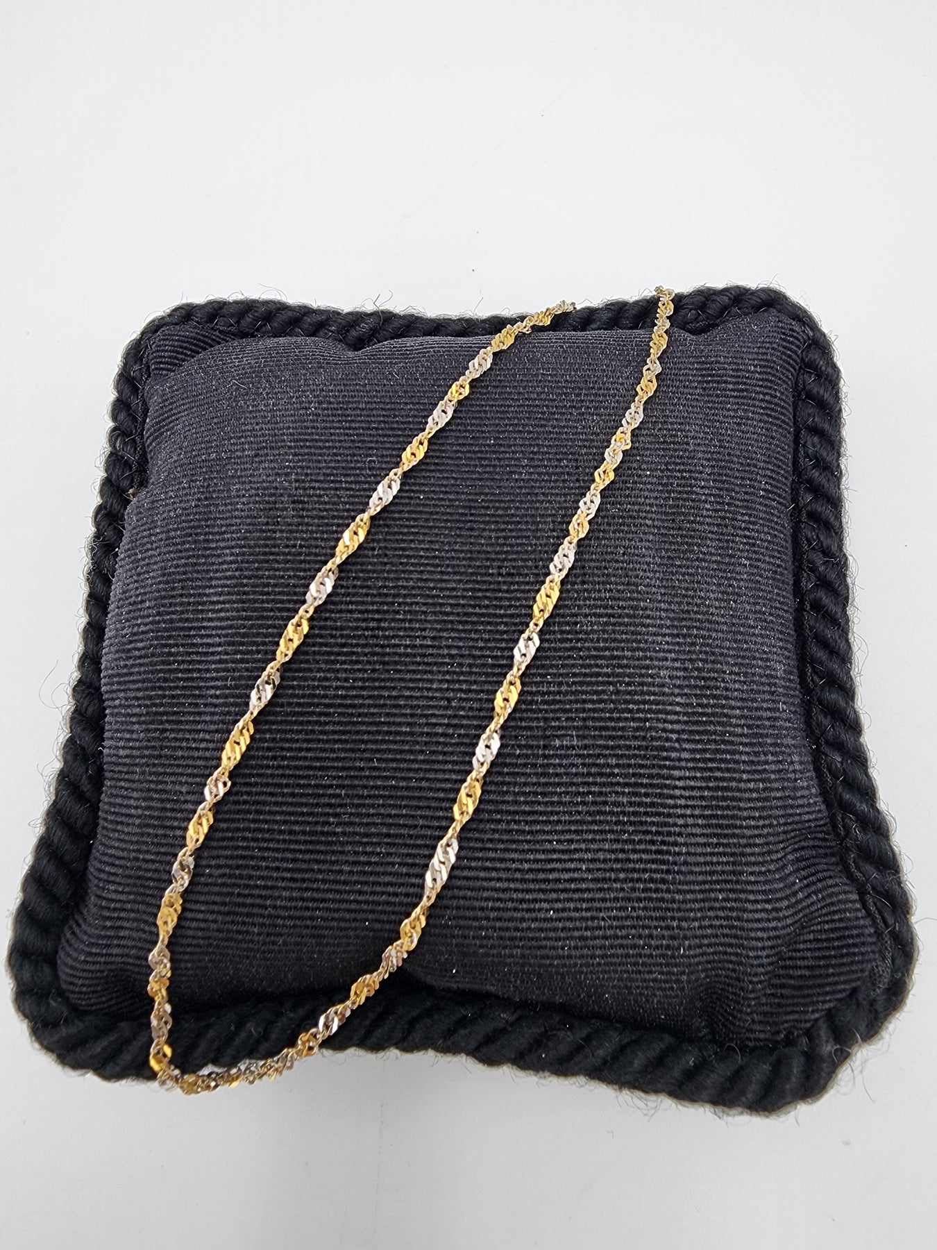 This is a lovely 14kt white and yellow gold Singapore anklet. It is in very good shape with no kinks. Perfect for daily wear. Anklet is stamped 14k. Would be a nice anniversary or birthday gift for her!