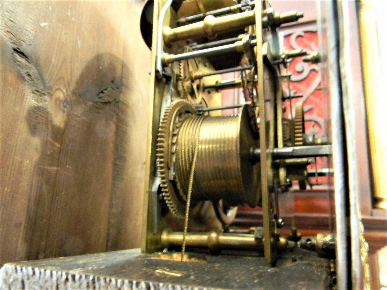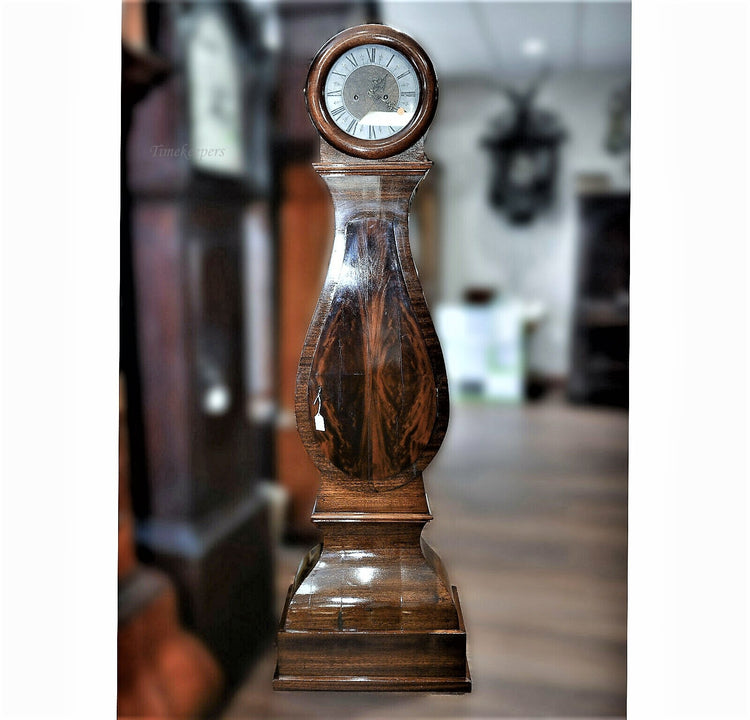 This is a German curved case grandfather clock 2 weight dating from 1890. This clock does have the gong in the movement and will strike on the hour and half hour. Considering it's age, it's in very good condition