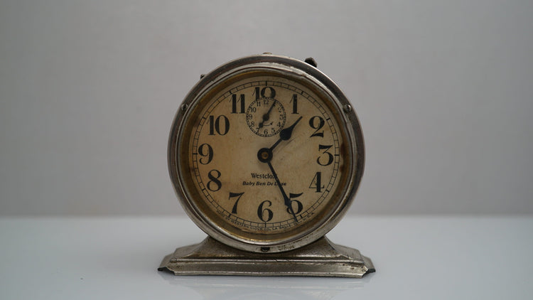 Good condition baby ben alarm clock. This clock is from the 1910's and still works. The alarm is a little behind but for these old clocks that is normal