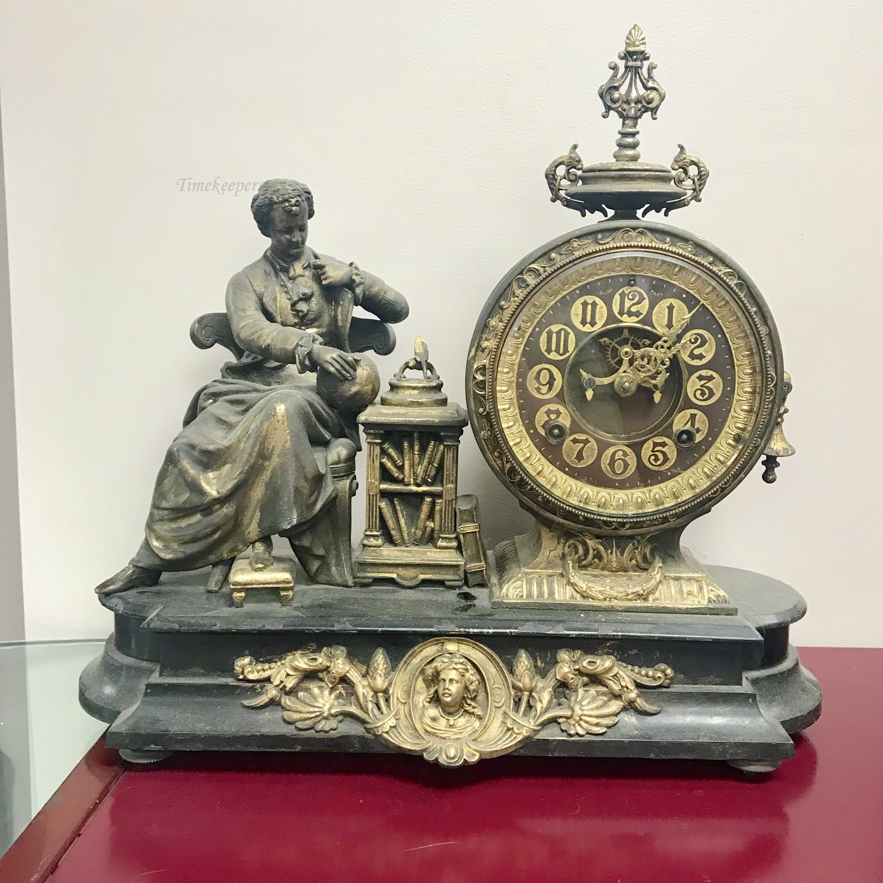 f251 Antique Bronze 1880's French Bronze Mantel Standing Clock Great Condition