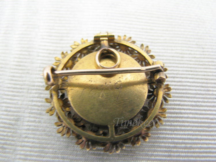 c104 Antique 14k Yellow Gold Portrait with Daisy Frame Brooch/ Pendant