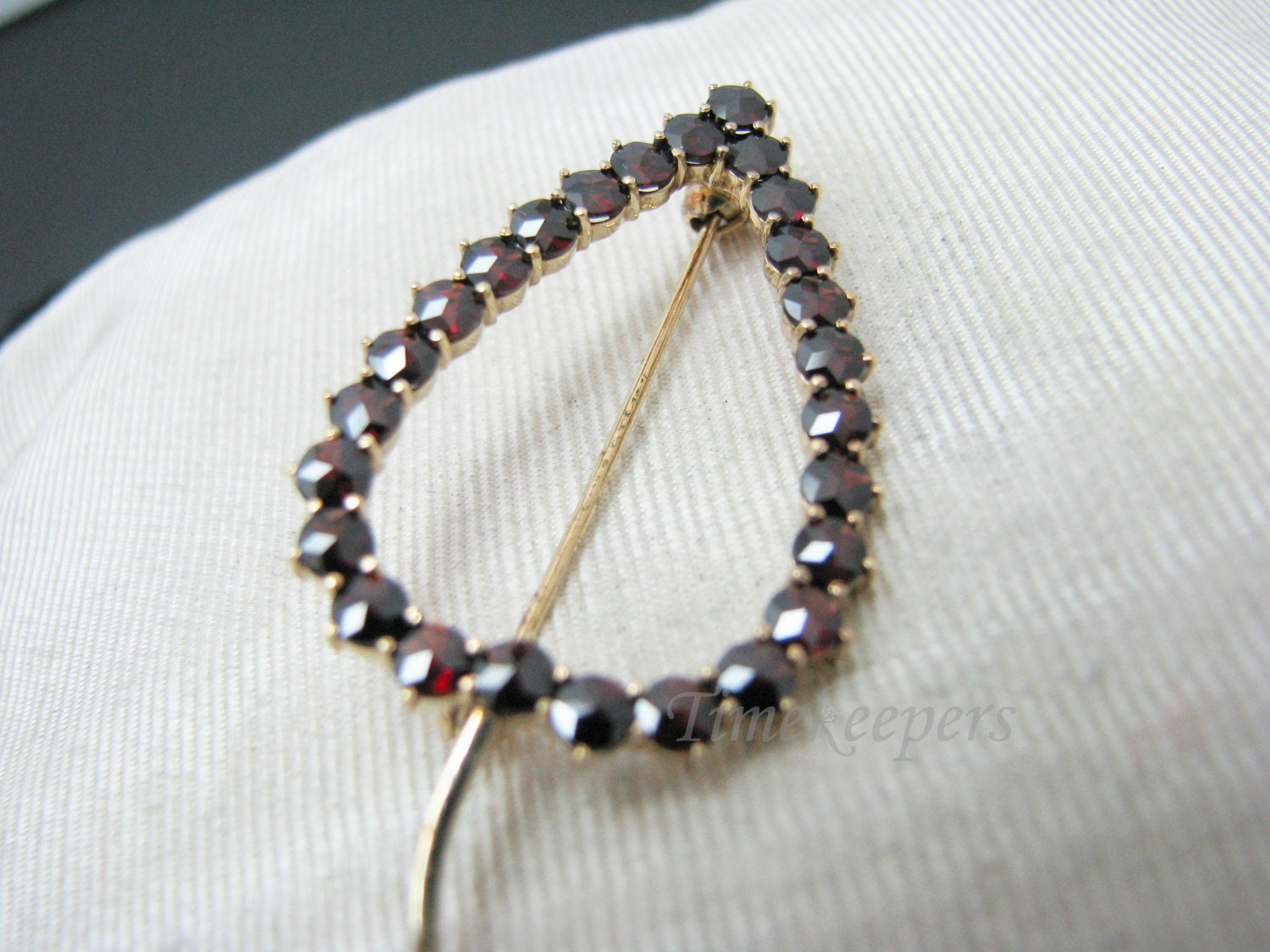 Beautiful garnets form the shape of a leaf with a stem all in 10k yellow gold.