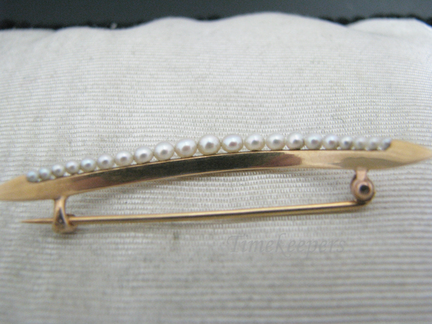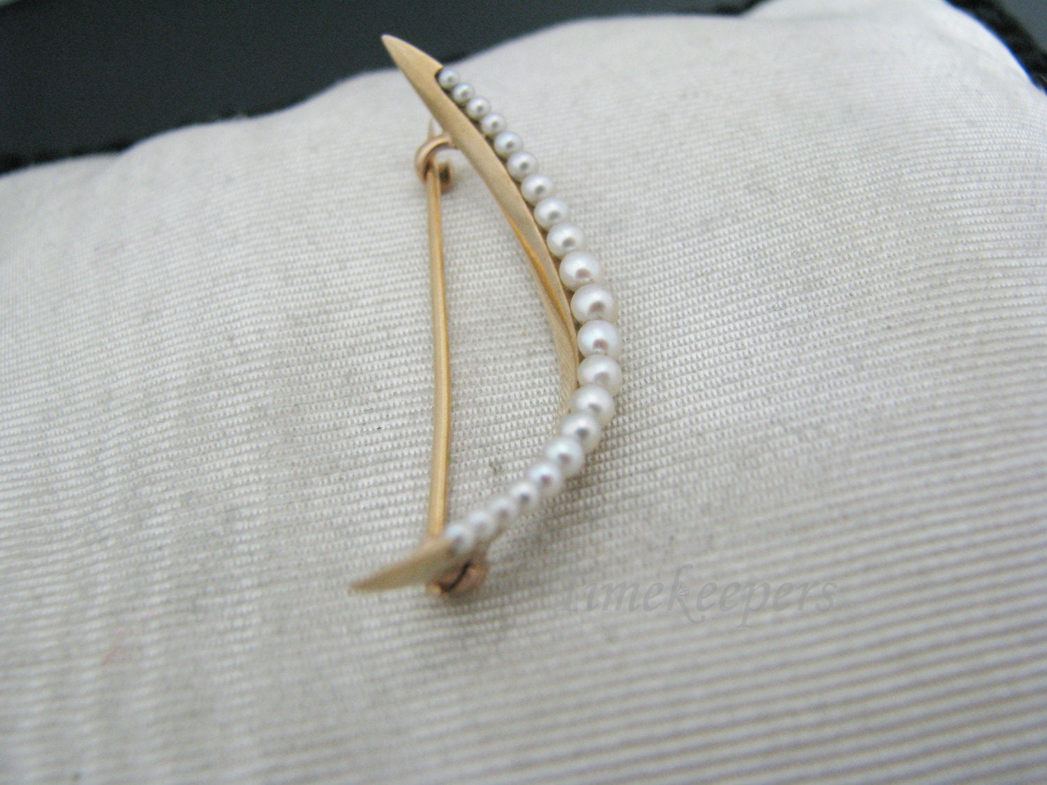 For Sale: (1) Beautiful Vintage 14k Yellow Gold Curved Pearl Brooch