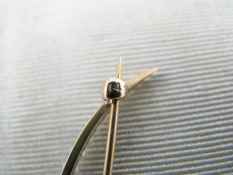 c099 Beautiful Vintage 14k Yellow Gold Curved Pearl Brooch