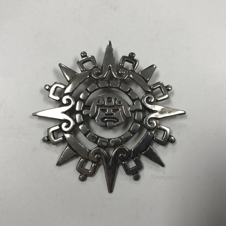 • Sterling Silver Brooch/pin. Can also be used as a pendant. Mayan Calendar. Stamped - 925 Mexico