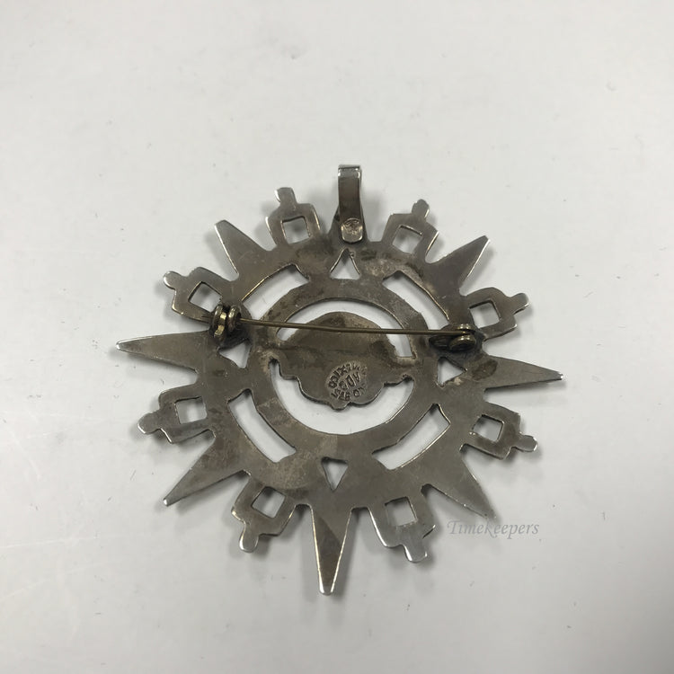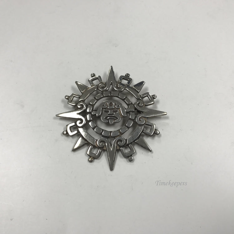 d273 Vintage Sterling Silver Mayan Calendar Circle Pendant Brooch Pin Mexico 925