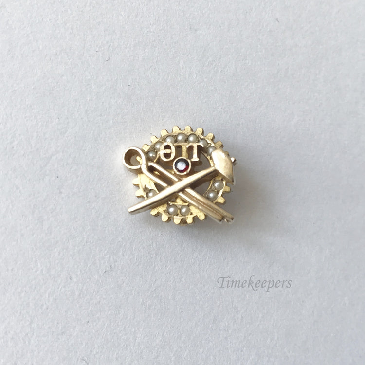 e195 Vintage 10K Gold Ruby Pearls Theta Tau Pin Brooch