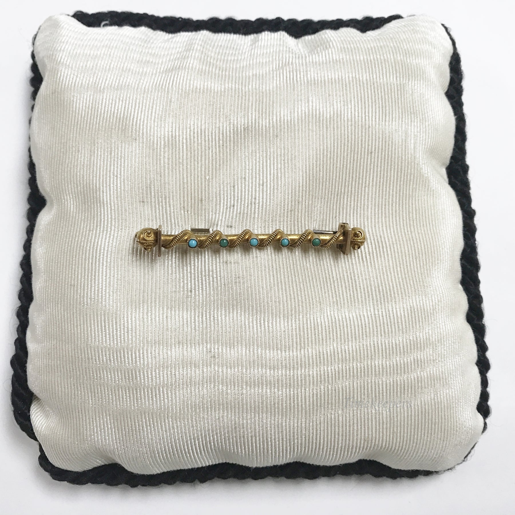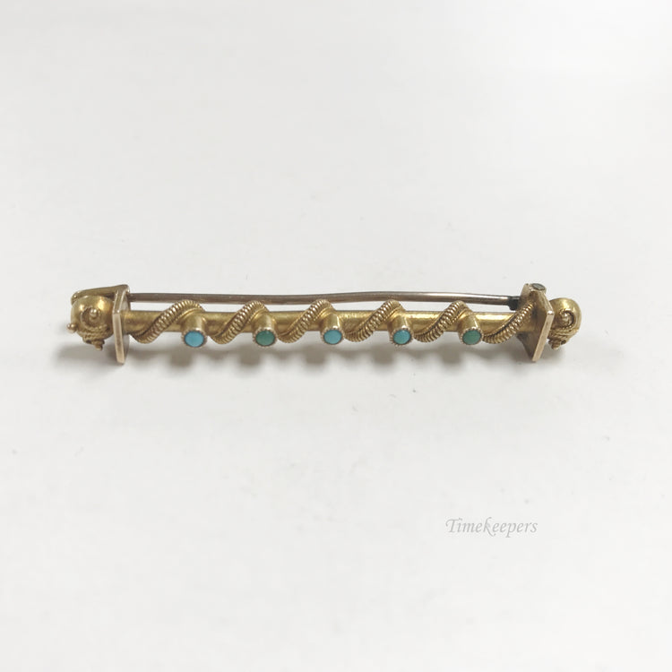 e800 Vintage 14K Yellow Gold Turquoise Twisted Wire Pin Brooch