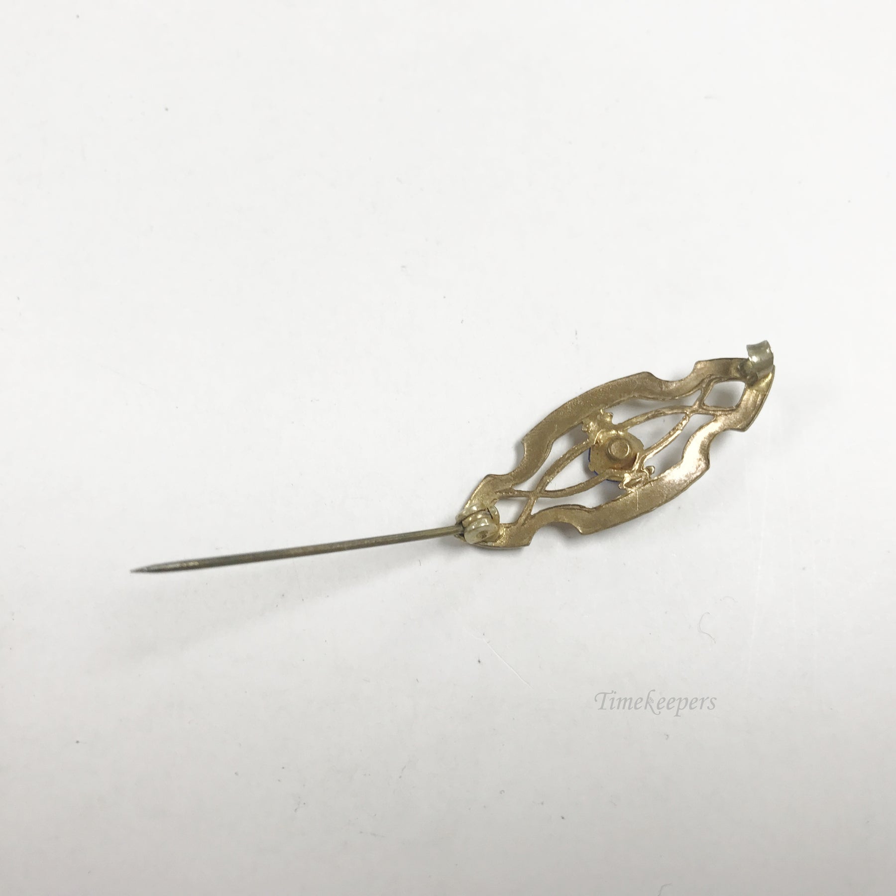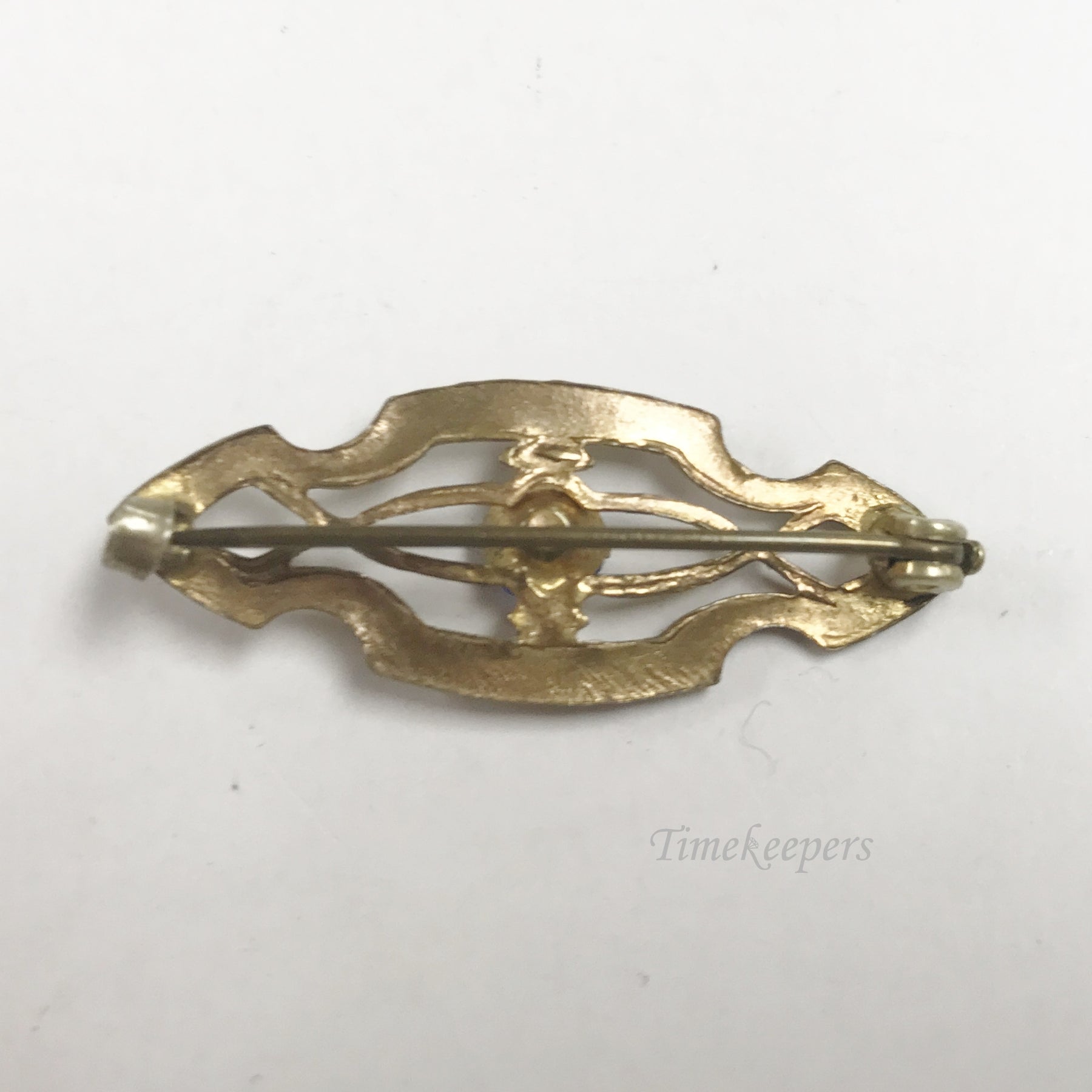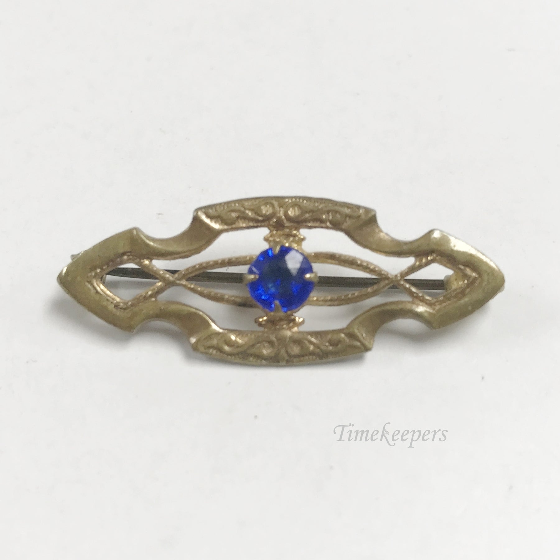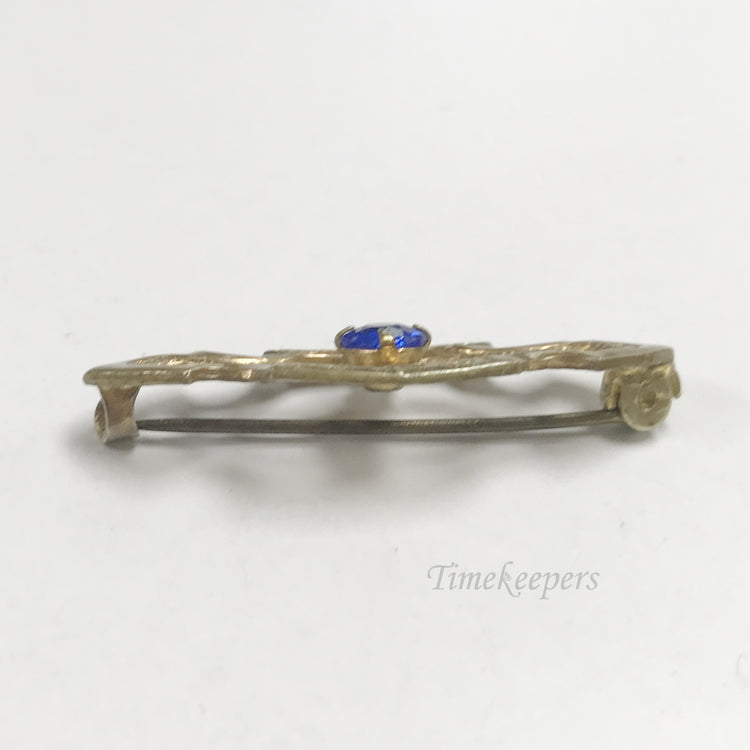 e802 Vintage Unique Gold Filled Blue Stone Filigree Pin Brooch
