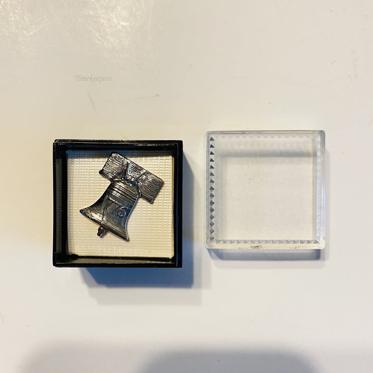 f601 Vintage Silver Tone Screw Back Liberty Bell Tie Tack with chained Button Bar 1776
