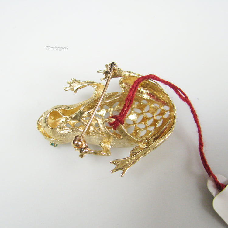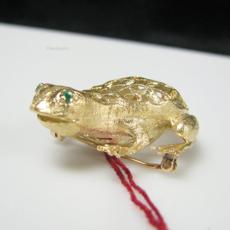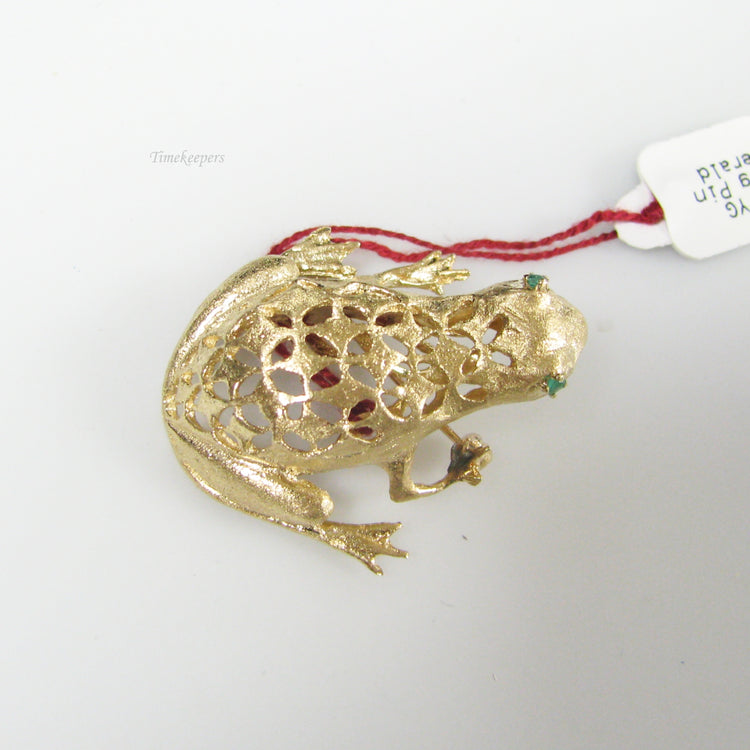 g030 Unique 14k Yellow Gold Emerald Frog Brooch / Pin