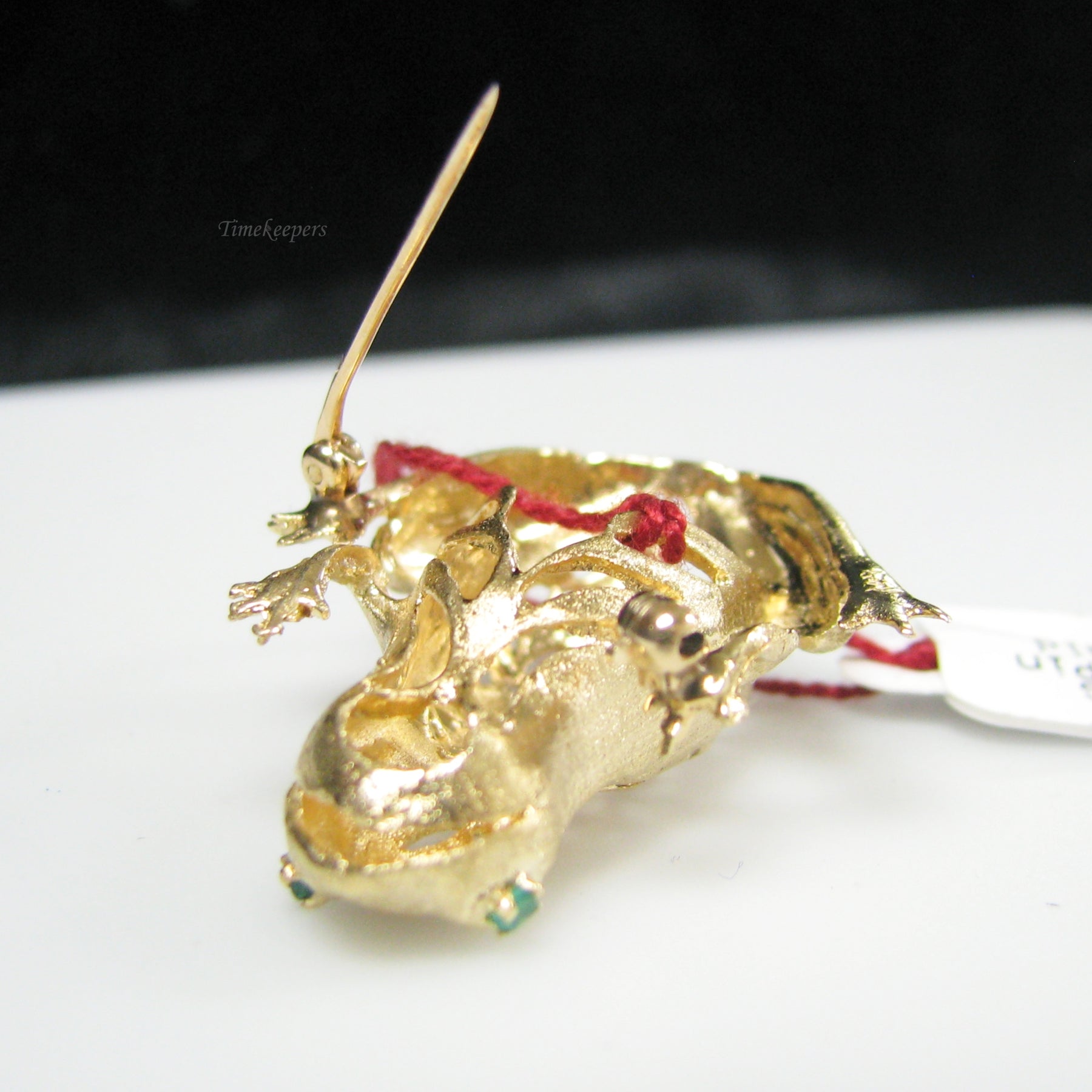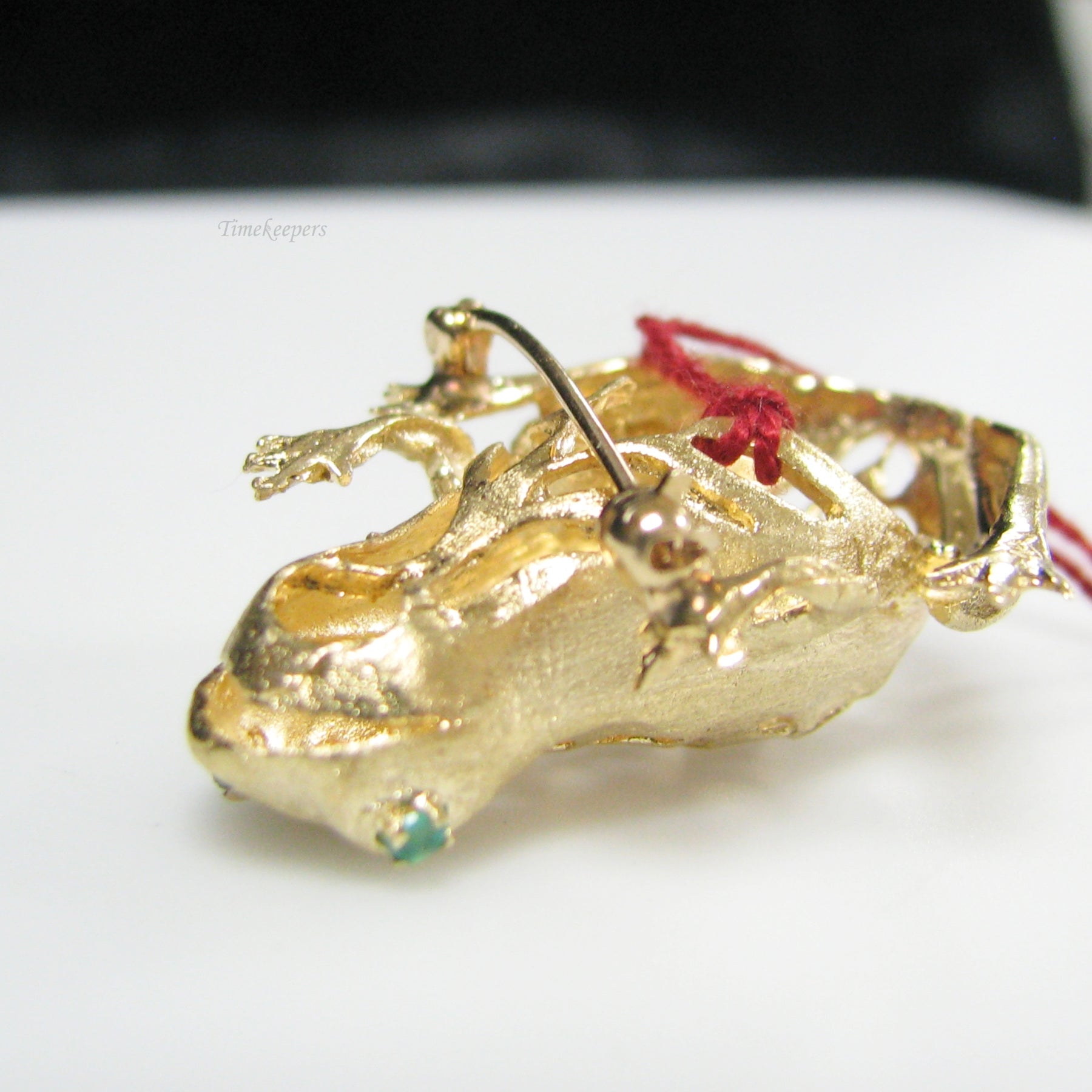 For sale: (1) g030 Unique 14k Yellow Gold Emerald Frog Brooch / Pin