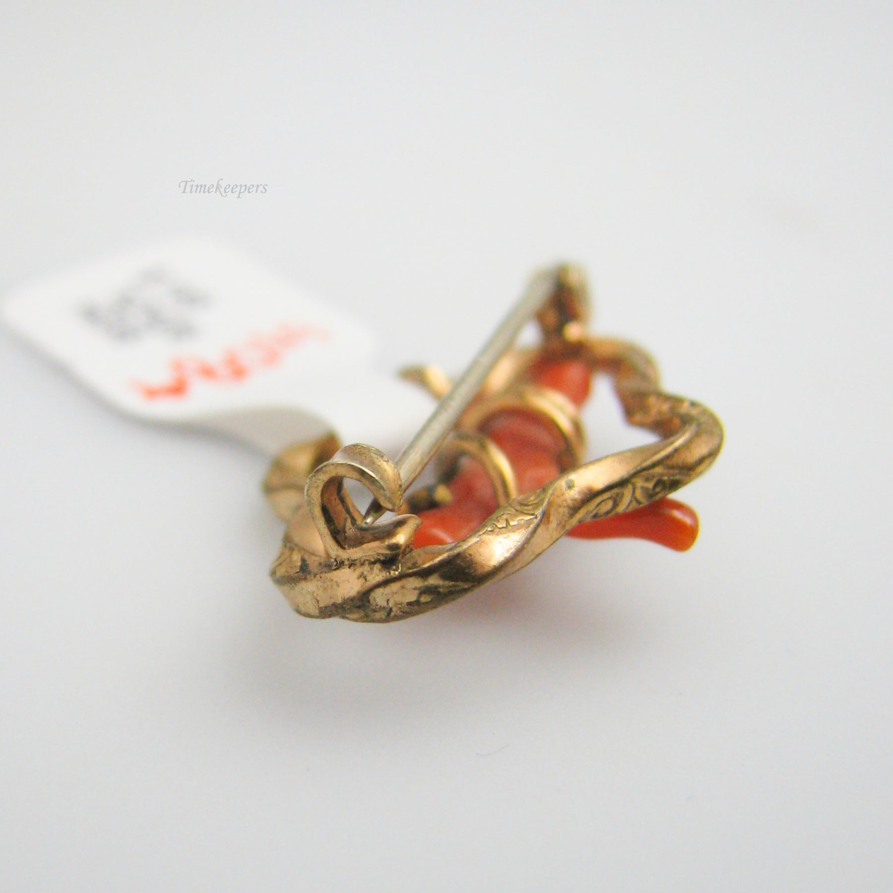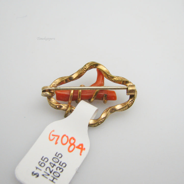This pin contains a funky Coral stone. It is not stamped, but has been tested for authenticity.