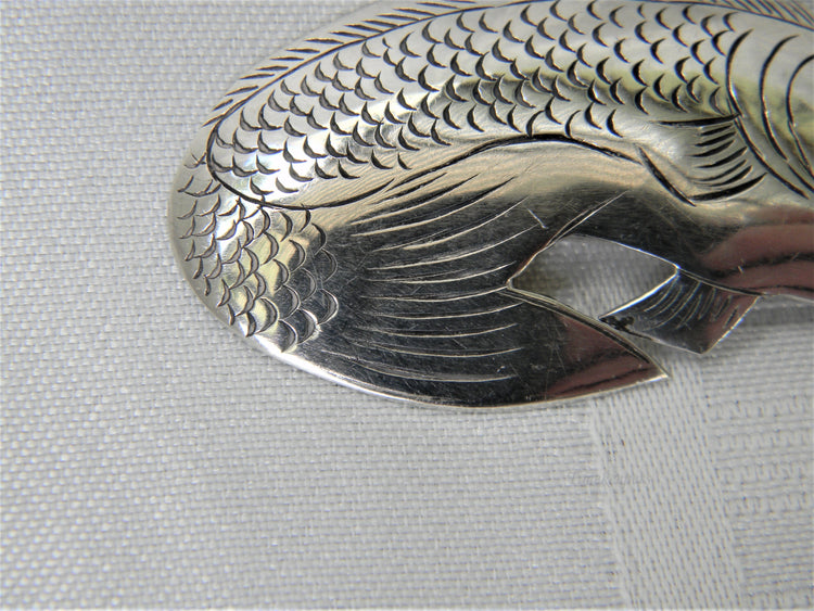 j384 Beautiful Vintage Sterling Jumping Fish Brooch