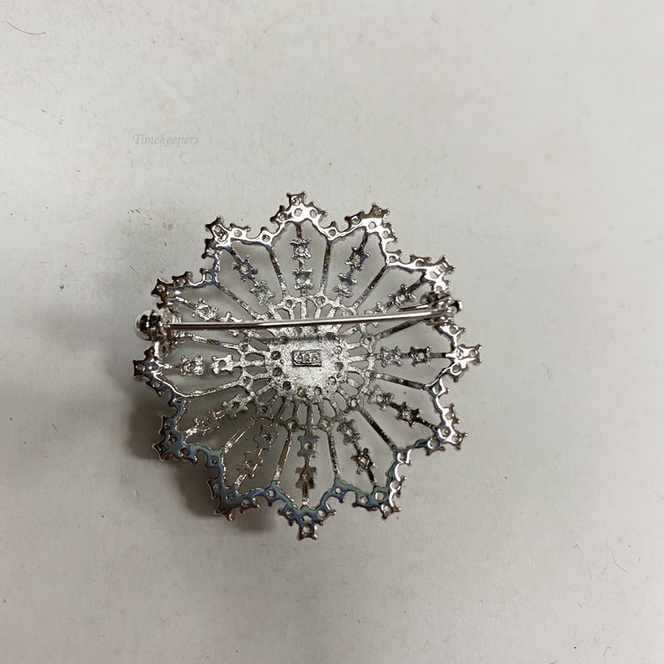 m232 Vintage Sterling Silver White Stones Pearl Flower Star Brooch Lapel Pin