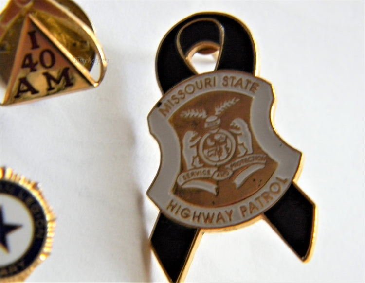 Enamel black ribbon Missouri State Highway Patrol lapel pin approx. 3/4" 1 1/4". No pin backs.