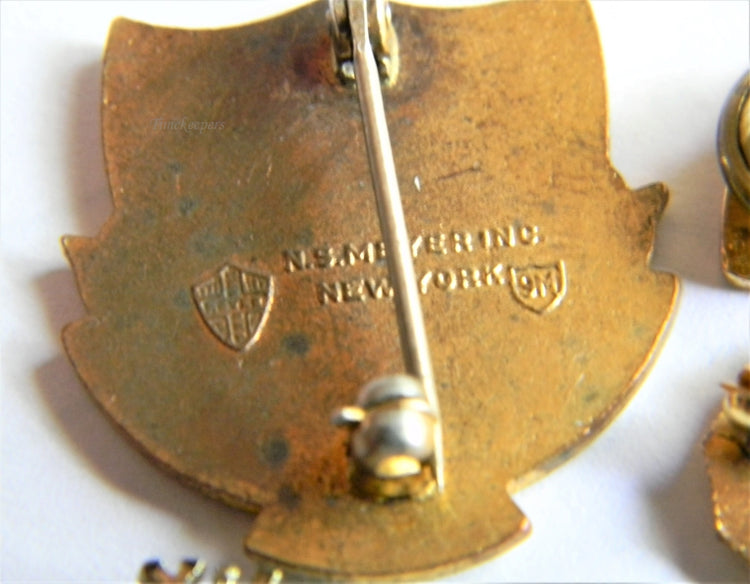 Enamel and gold tone Religio Mores Cultura lapel pin approx. 1" x 1 1/8". The back says N.S. Meyer Inc, New York, 9M.