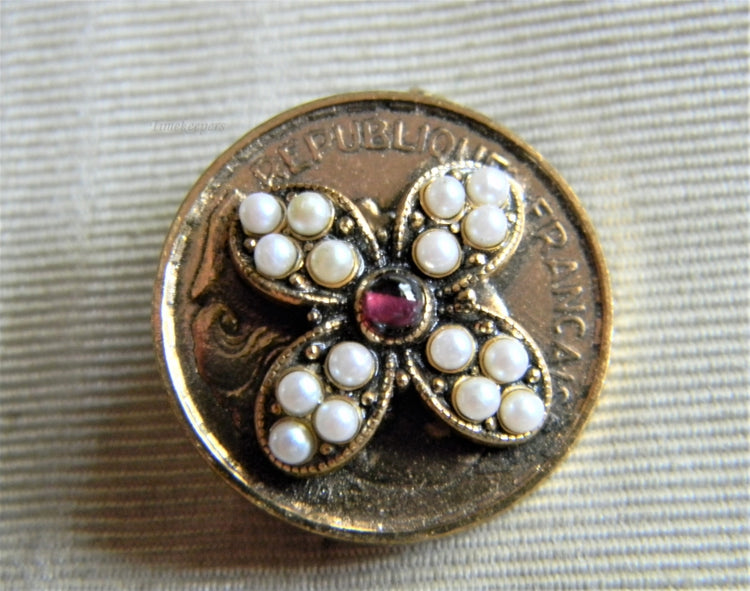 For Sale: (1) Unique Vintage 20 Franc 1952 with Flower in Pearls on Front
