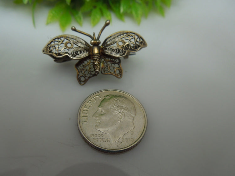 For Sale (1) : q210 Vintage Sterling Silver Beautiful Filigree Design Butterfly Pin/Brooch