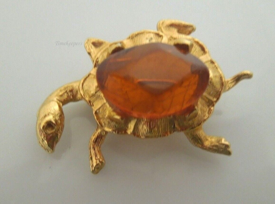 s029 Yellow Gold tone 'Turtle' Brooch - Vintage French Pin Brooch