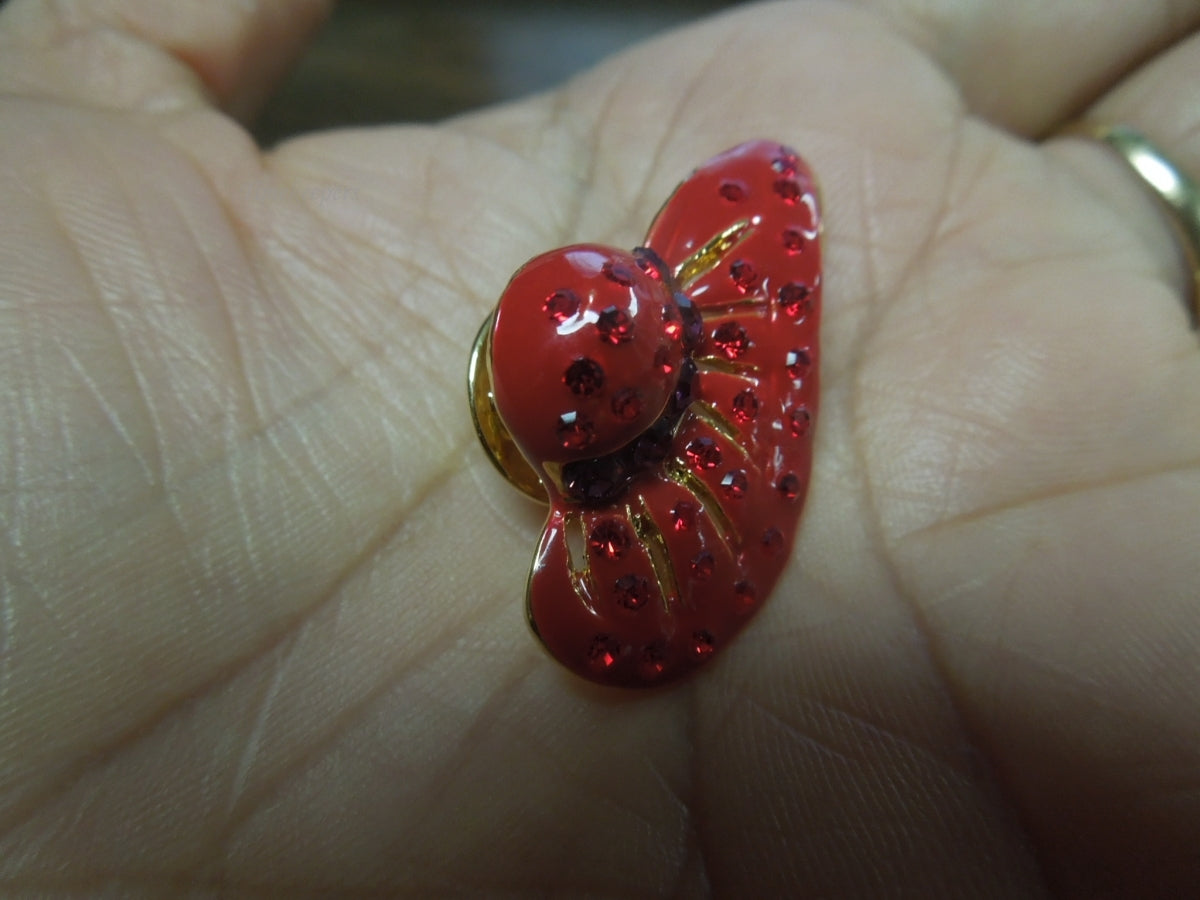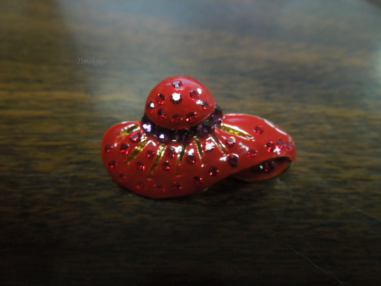 For sale: (1) s144 Vintage Red Hat Purple Bling Crystals Hat Pin Brooch Gold Tone Rhinestones