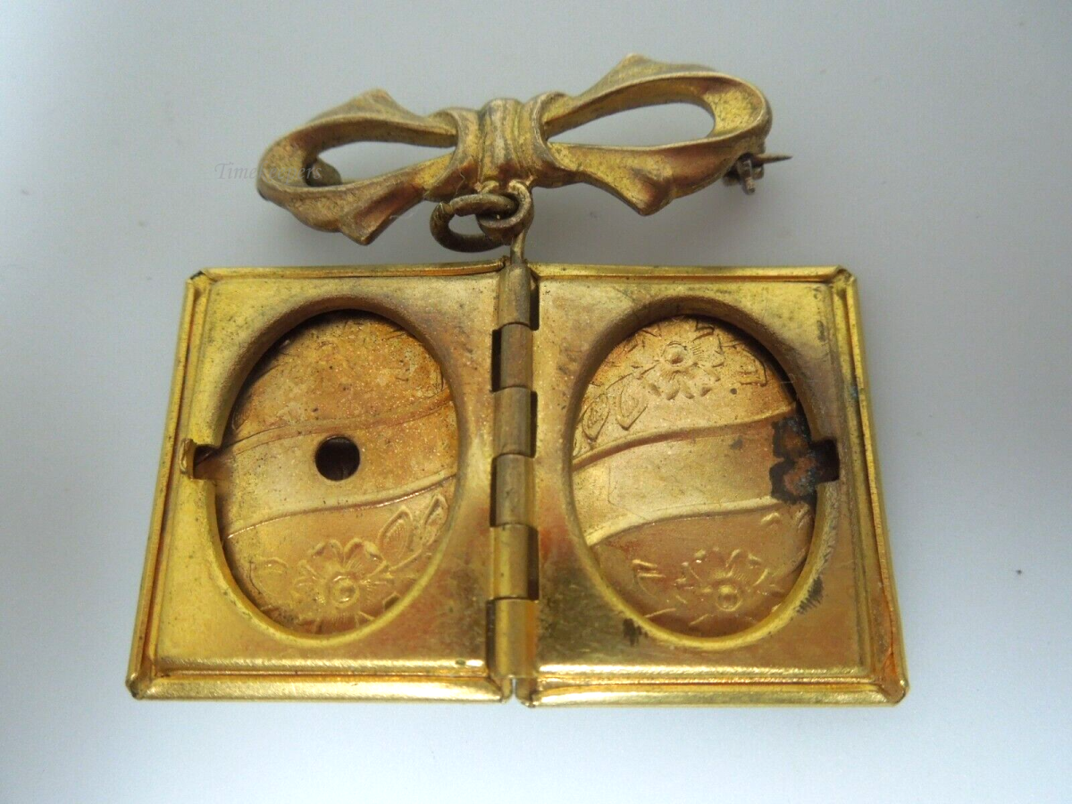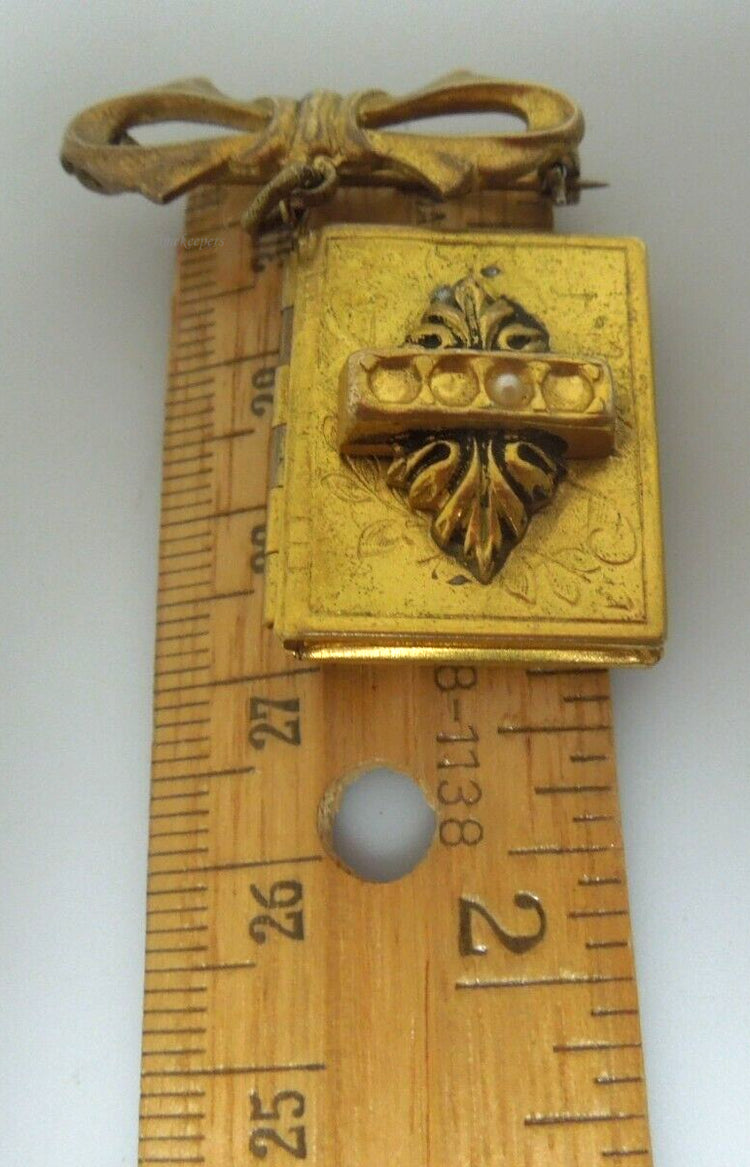 For Sale(1) s332 Vintage Mid Century Bow with Dangling Book Shaped Locket Pin Brooch