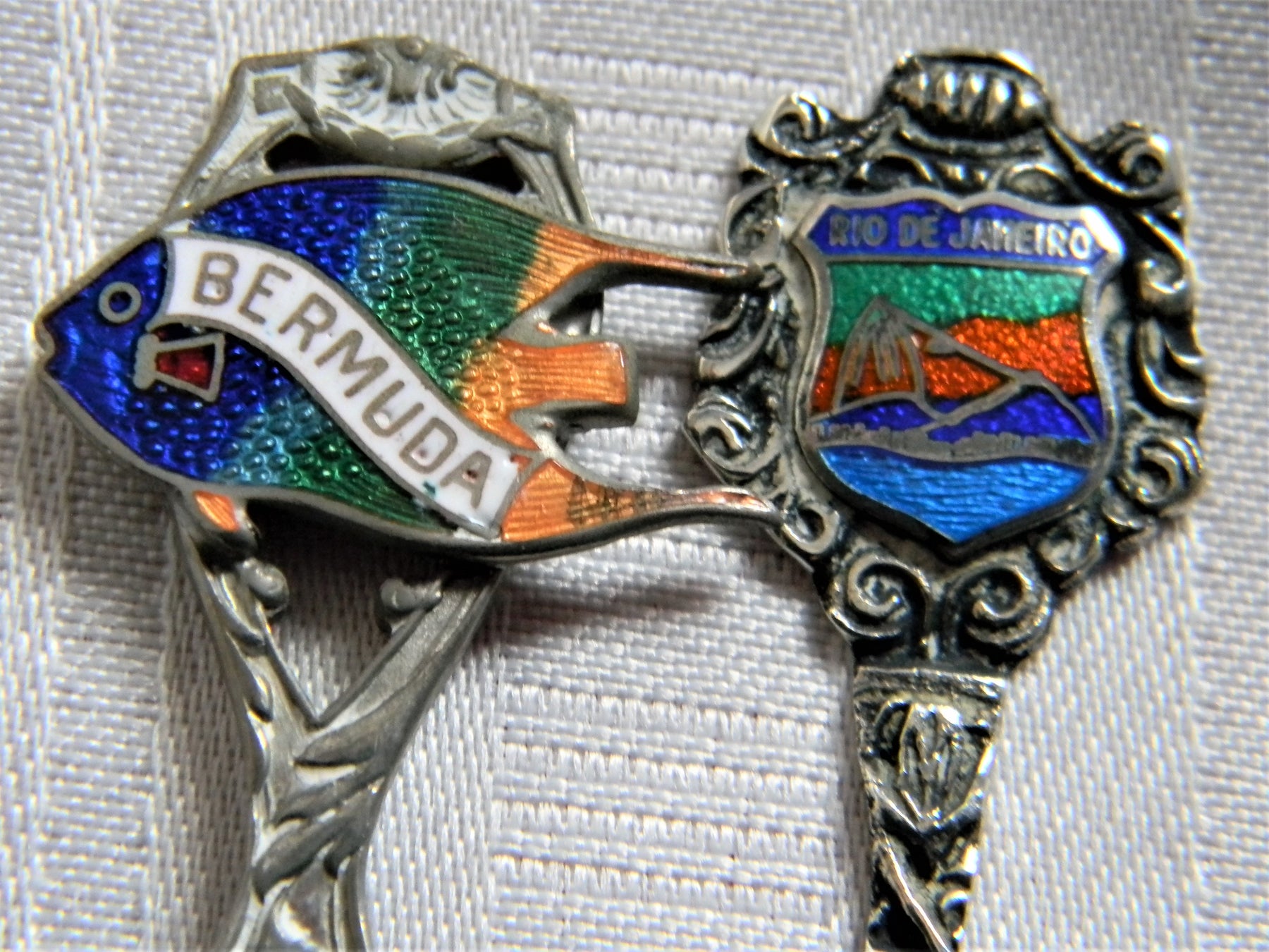 The Bermuda spoon features an enamel fish with the word Bermuda. There are no other markings on this spoon.
