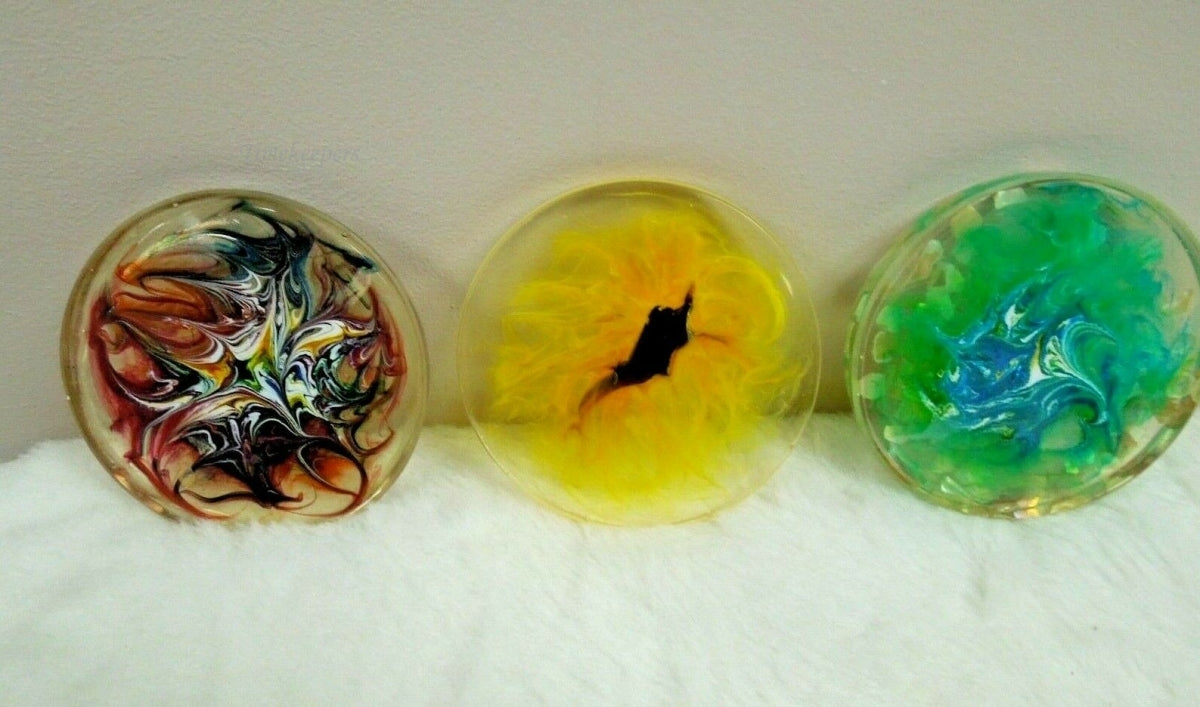 For Sale: (1) q865 Set of 3 Acrylic Handmade Coasters Beautiful