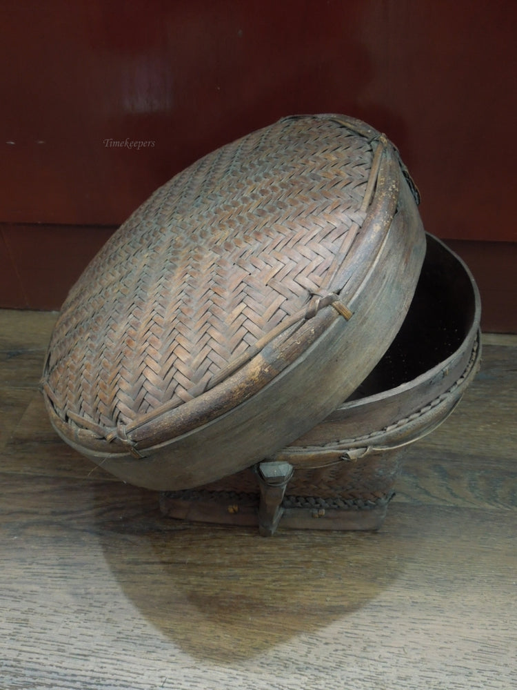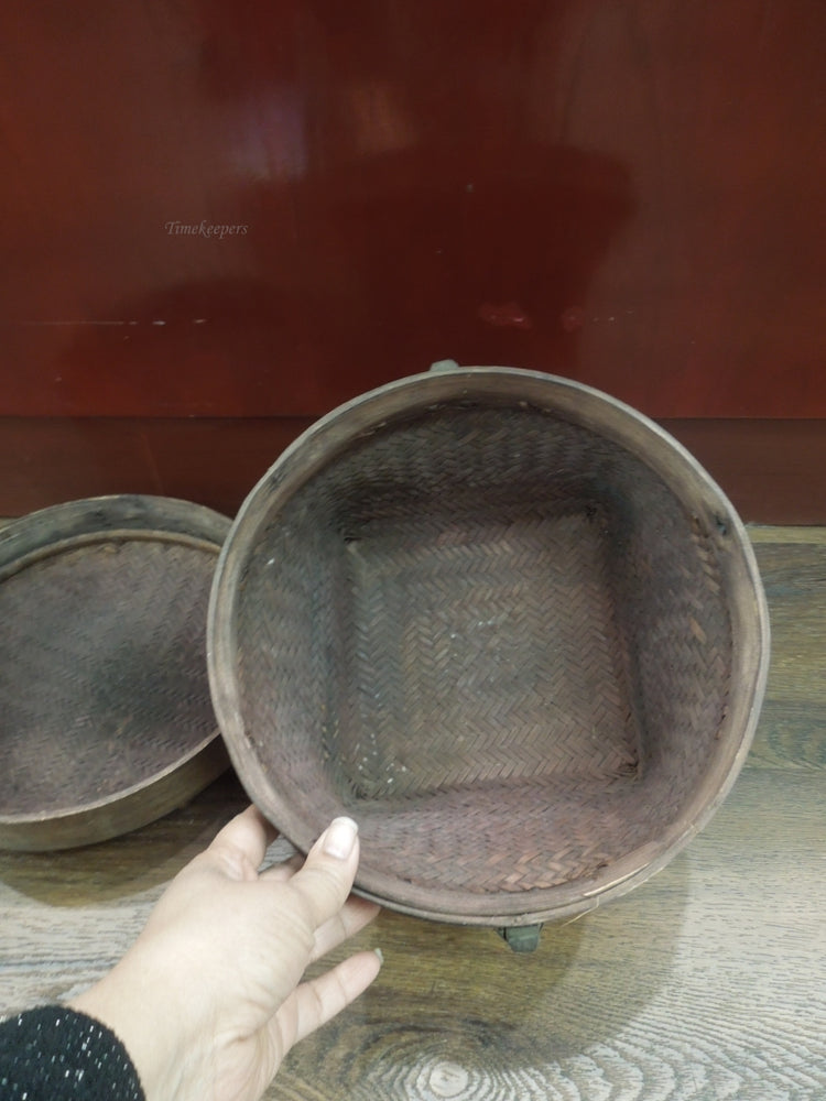 For Sale (1): q915 Antique Vintage Akha Thai Round Woven Rice Basket Bamboo Rare