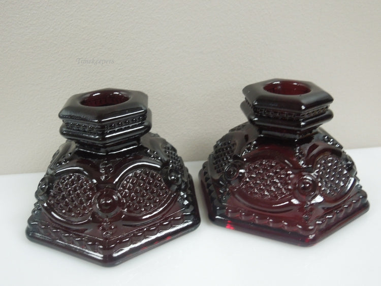 For Sale (1): q921 Ruby Red Glass Avon Cape Cod Single Light Candlestick Holder Vintage