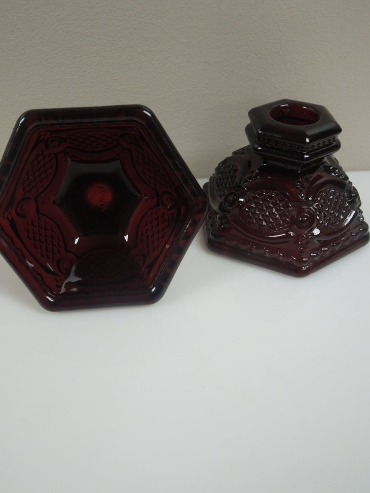 Vintage Ruby Red Glass Avon Cape Cod Single Light Candle Stick Holder.