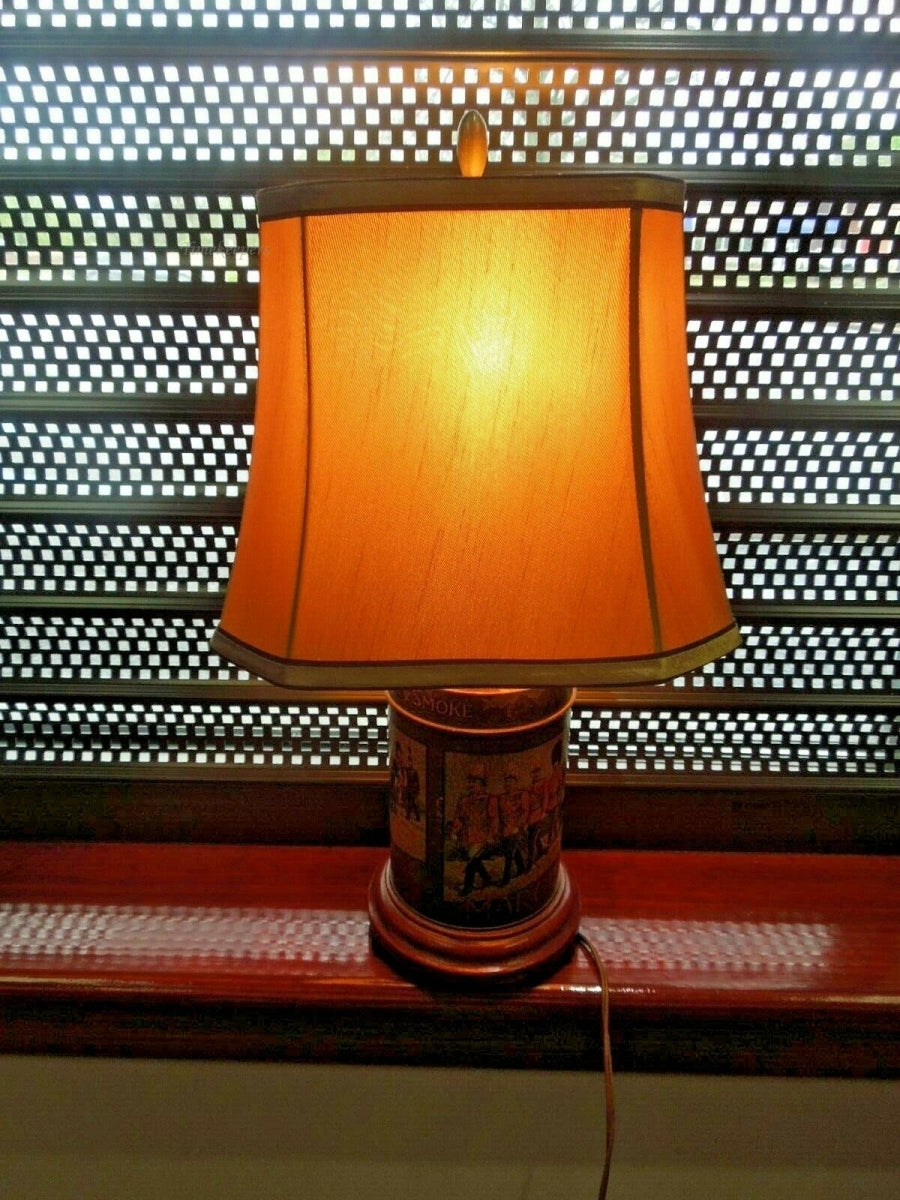 For your consideration is a Marcella Cigars All Ranks tin converted to a lamp. This tin depicts ten ranks of British Army Officers in full dress uniform. Round feet have been placed on the bottom and a smaller tin on top to change to a lamp. Lamp works and is electric. Bulb included. Stands a total of 11" tall to the top of the socket. And a total Height of 17.5 inches along with the lamp shade. Would look wonderful on a man's desk. Please email with any questions. Check my other listings and stop by my store to see other items, make sure to add me to your favorites as I list new items frequently.