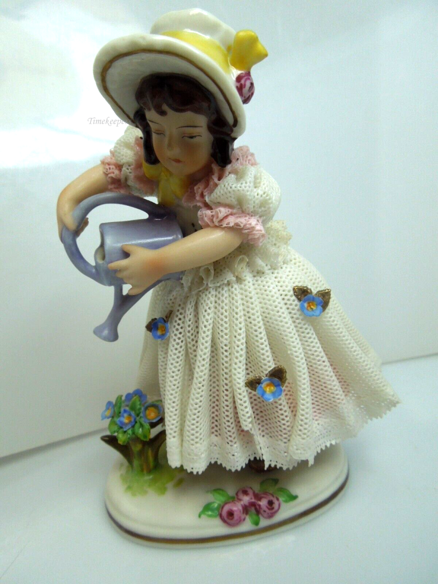 s797 Vintage Dresden German Continental Porcelain Figurine Girl in Lace Trim Dress Pouring water