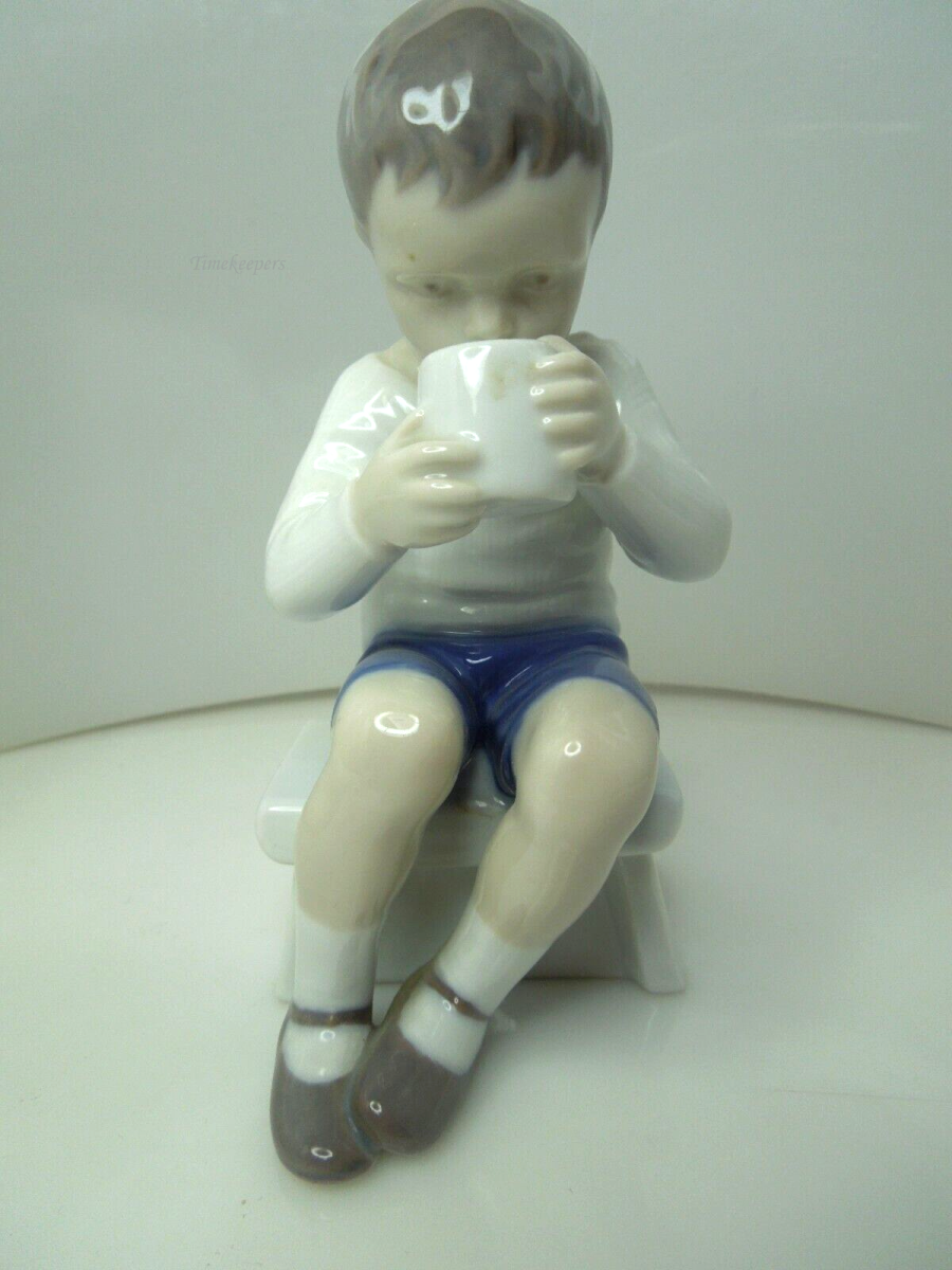 s749 Bing & Grondahl Porcelain Figurine #1713 Victor Boy Drinking Milk, Vintage Bing and Grøndahl Victor Drinking Milk