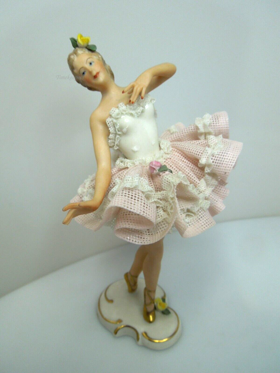 s801 Superb Antique /Vintage Dresden Figurine Porcelain Lace Dancer Ballerina- GERMANY