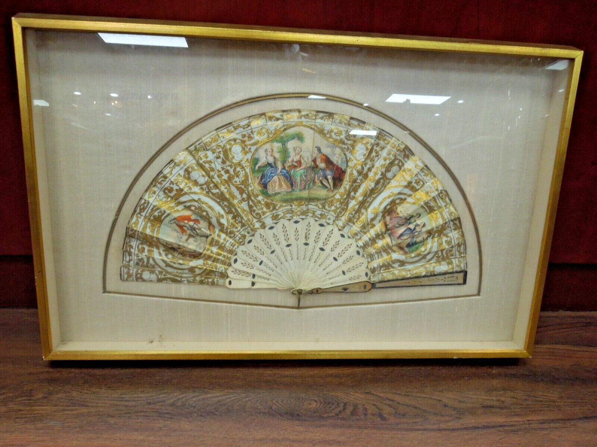 s971 Circa 1880 Continental Paper and Inlaid Fan with Wooden frame