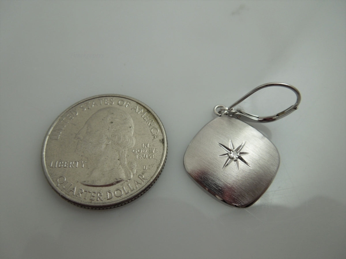 c396 Lovely Ladies Vintage Square Diamond Starburst Earrings in 14kt White Gold