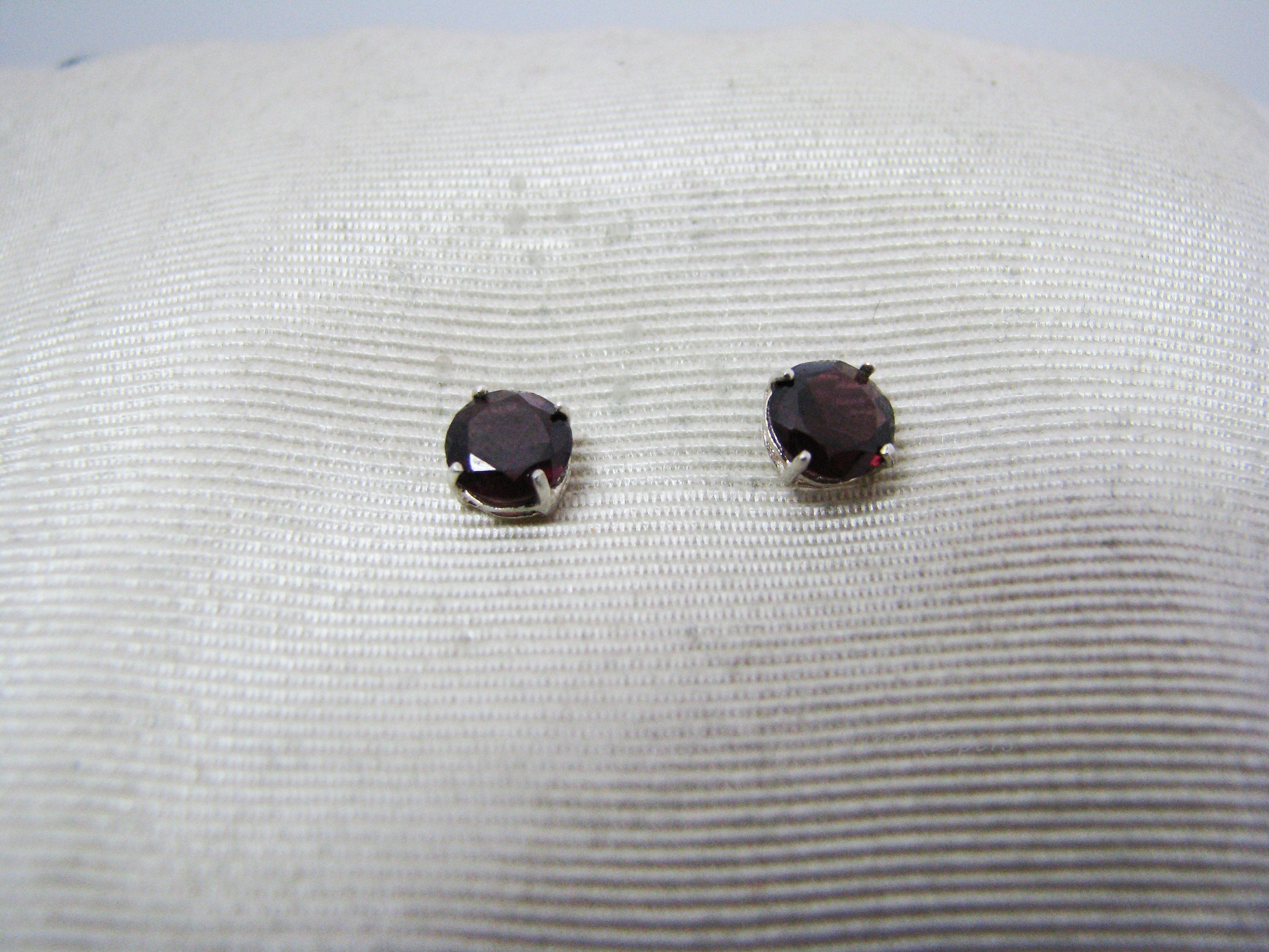 c531 Pretty Sterling Silver Post Earrings with Dark Red Stones