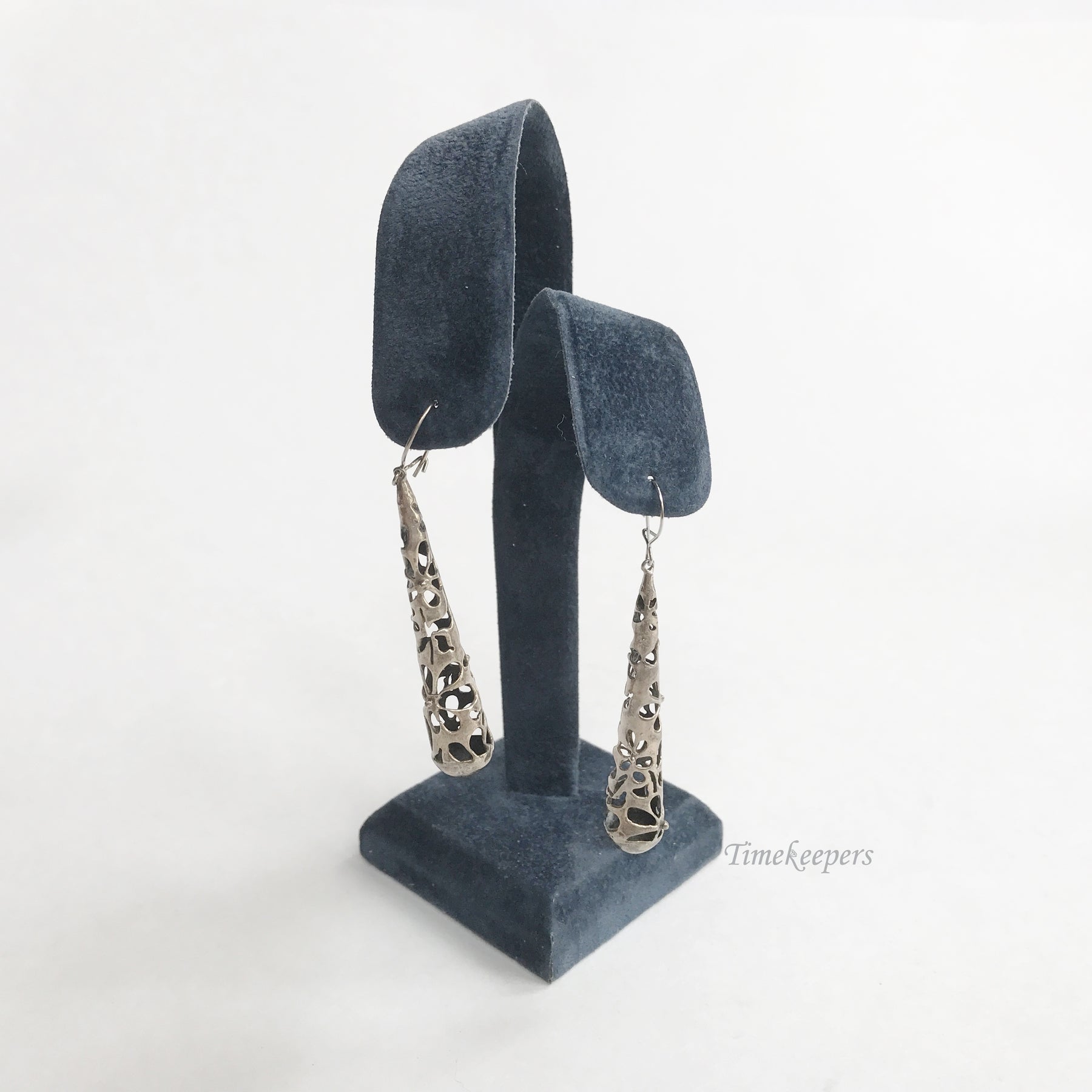 e335 Vintage Elegant Sterling Silver Dangling Filigree Earrings