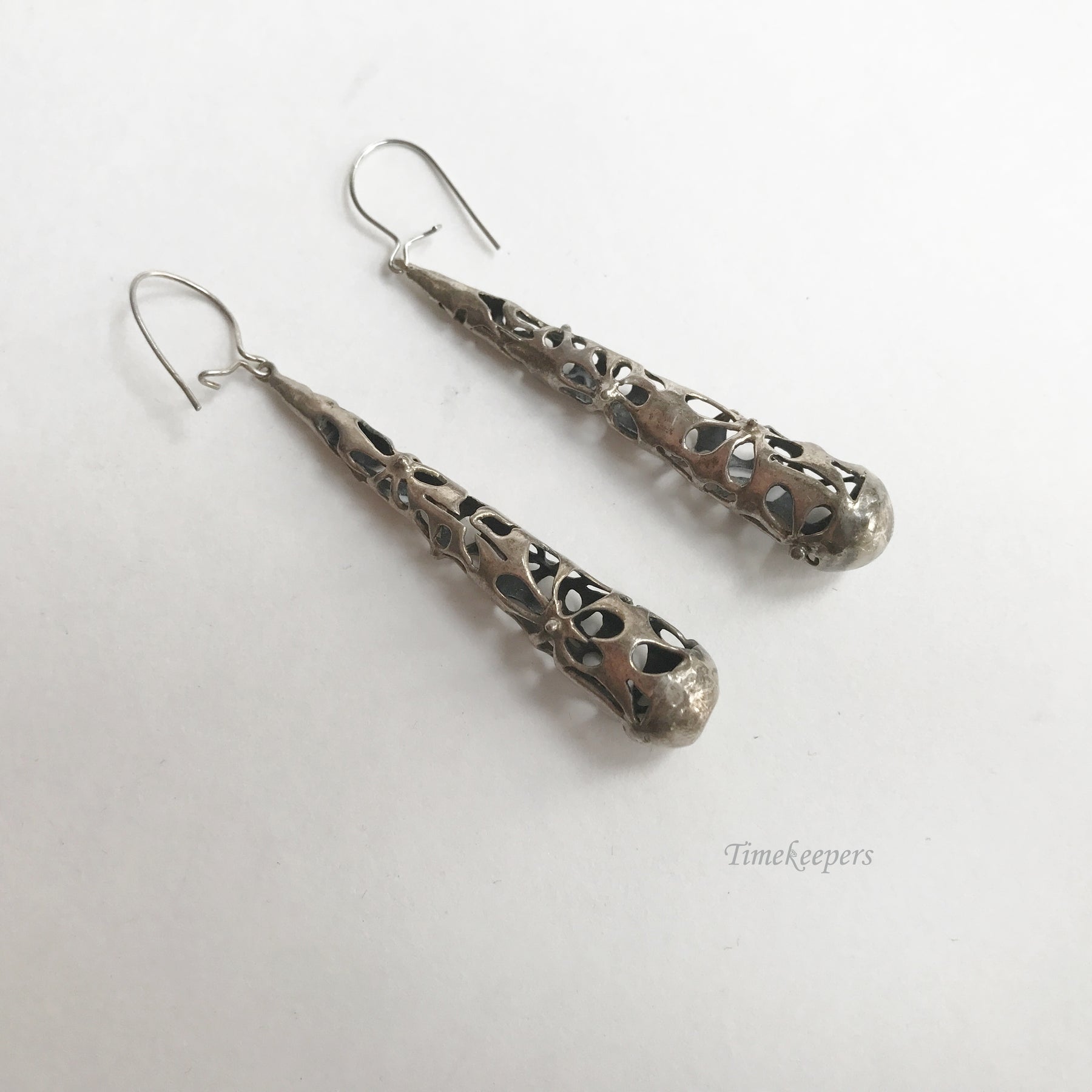 - Vintage pair of dangling earrings. Filigree sterling silver.