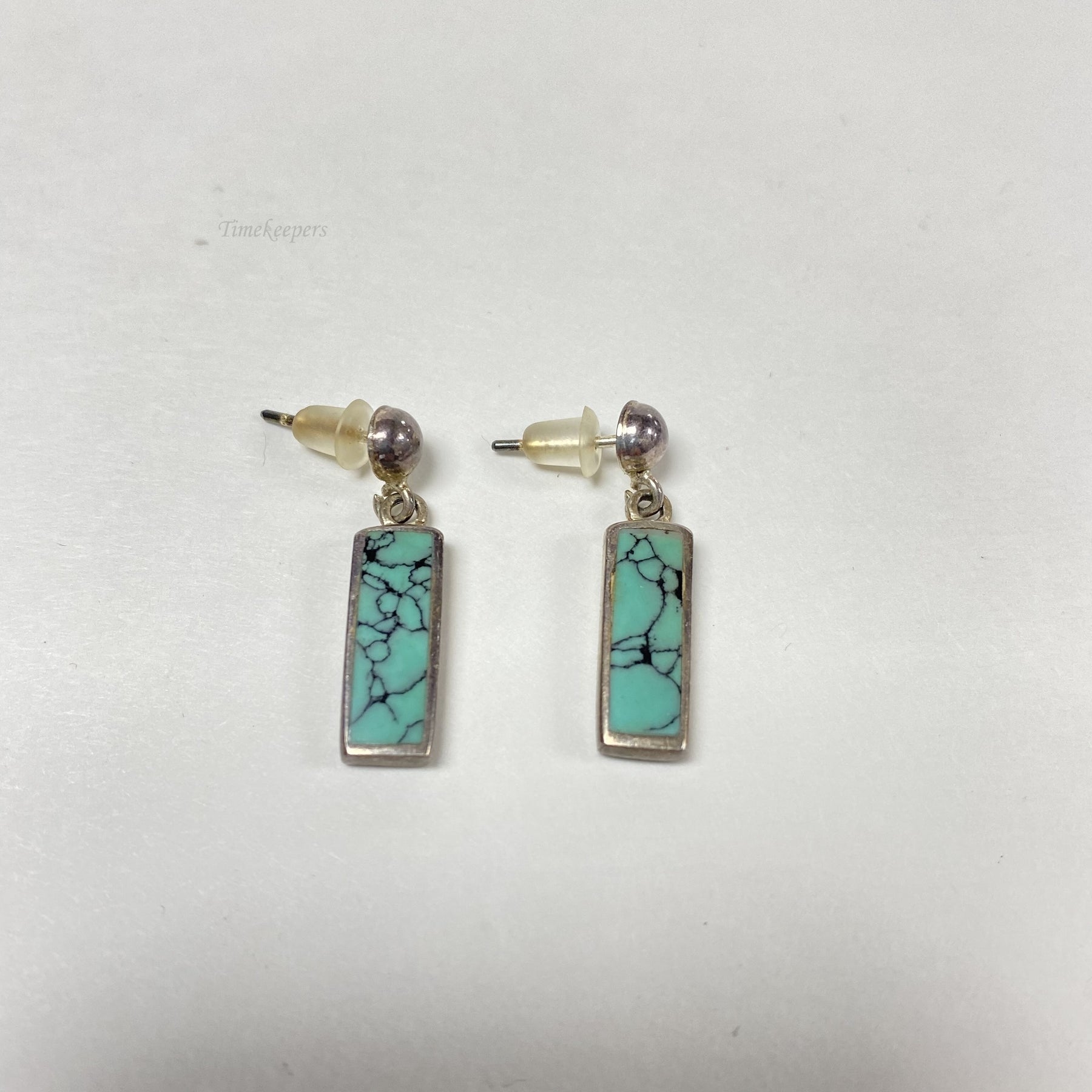 f522 Vintage Sterling Silver Blue Turquoise Dangle Earrings