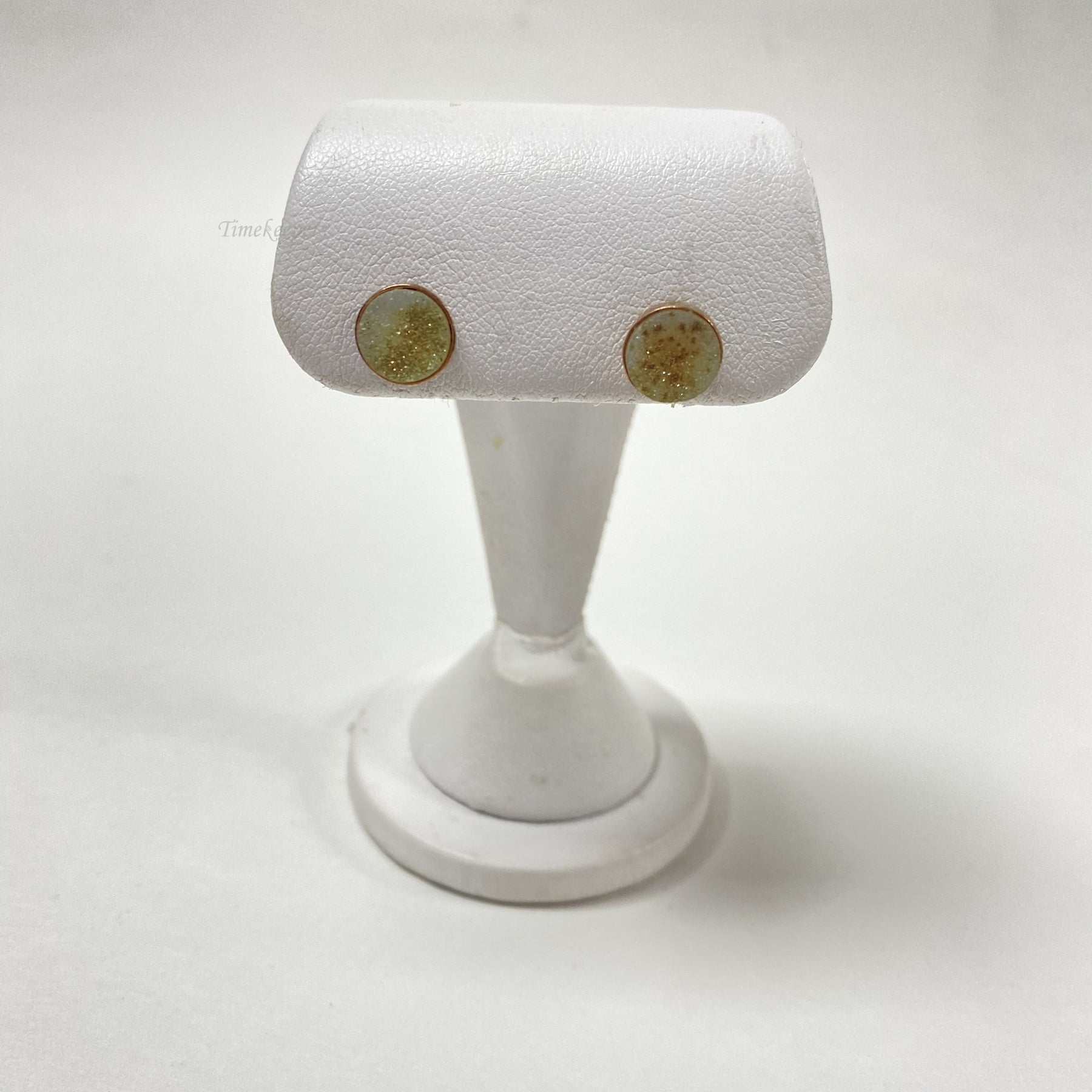 Vintage Sterling Silver Gold Tone Stud Earrings. Round Sparkly Genuine Stone 8mm in diameter.
