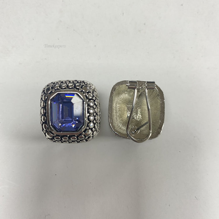 f650 Vintage Silver Tone Purple Stones Pierced Earrings