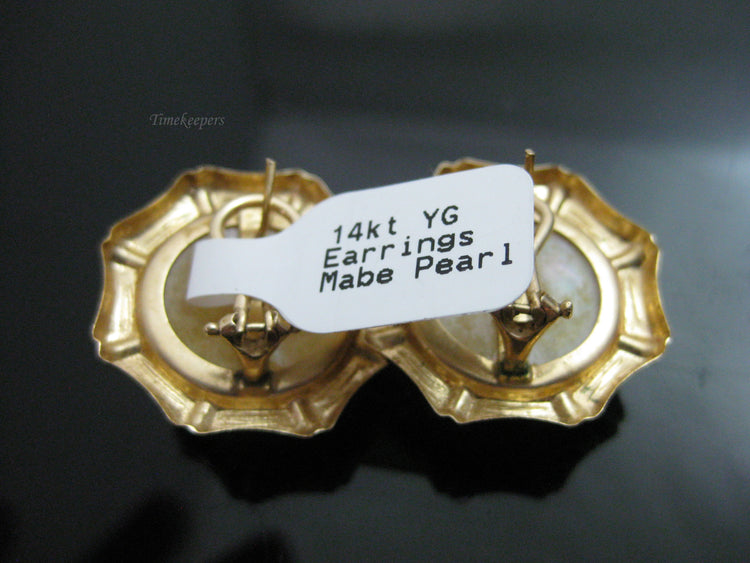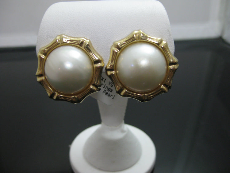 g294 Beautiful 14kt Yellow Gold Mabe Pearl Earrings