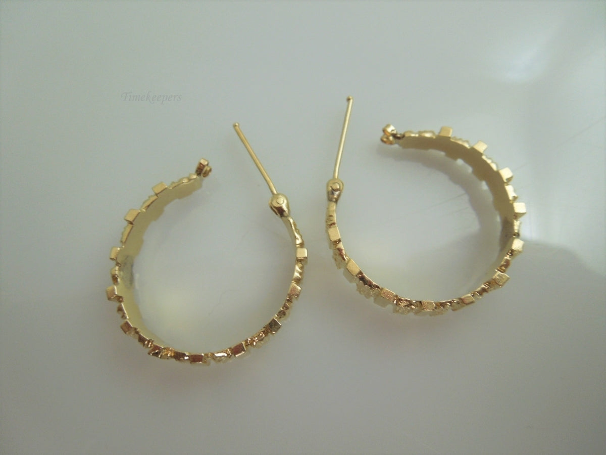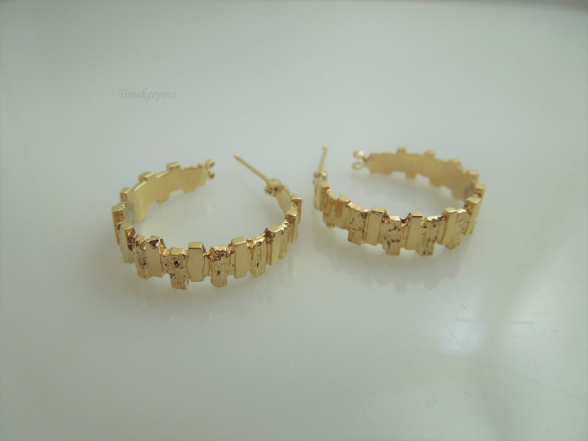 For Sale: (1) g926 Unique Ladies Bark Style Hoop Earrings in 14kt Yellow Gold