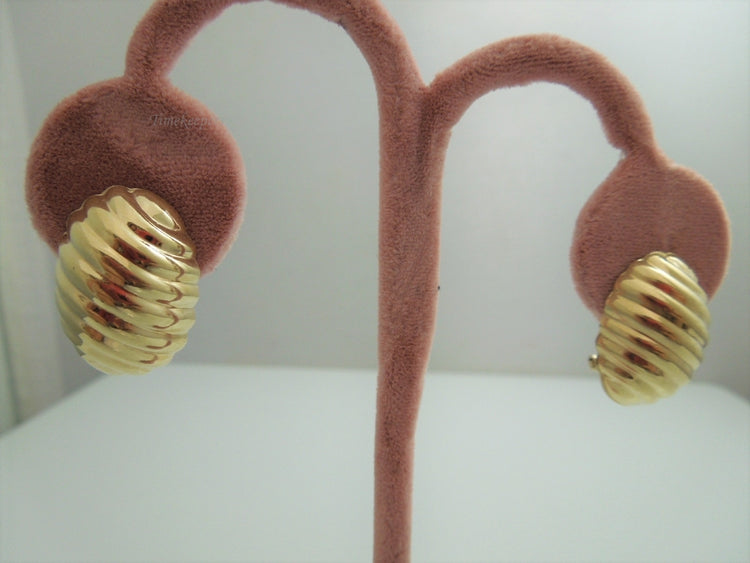 These are a beautiful pair of wavy 14kt yellow gold earring. Each earring has Omega backs. Perfect for daily wear or just on those special occasions. Earring posts are stamped 14k. Would be a nice anniversary, birthday, Christmas, Mother's Day or Valentine's Day gift for her.